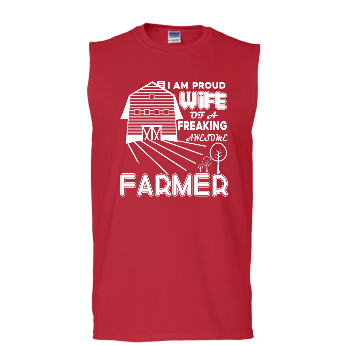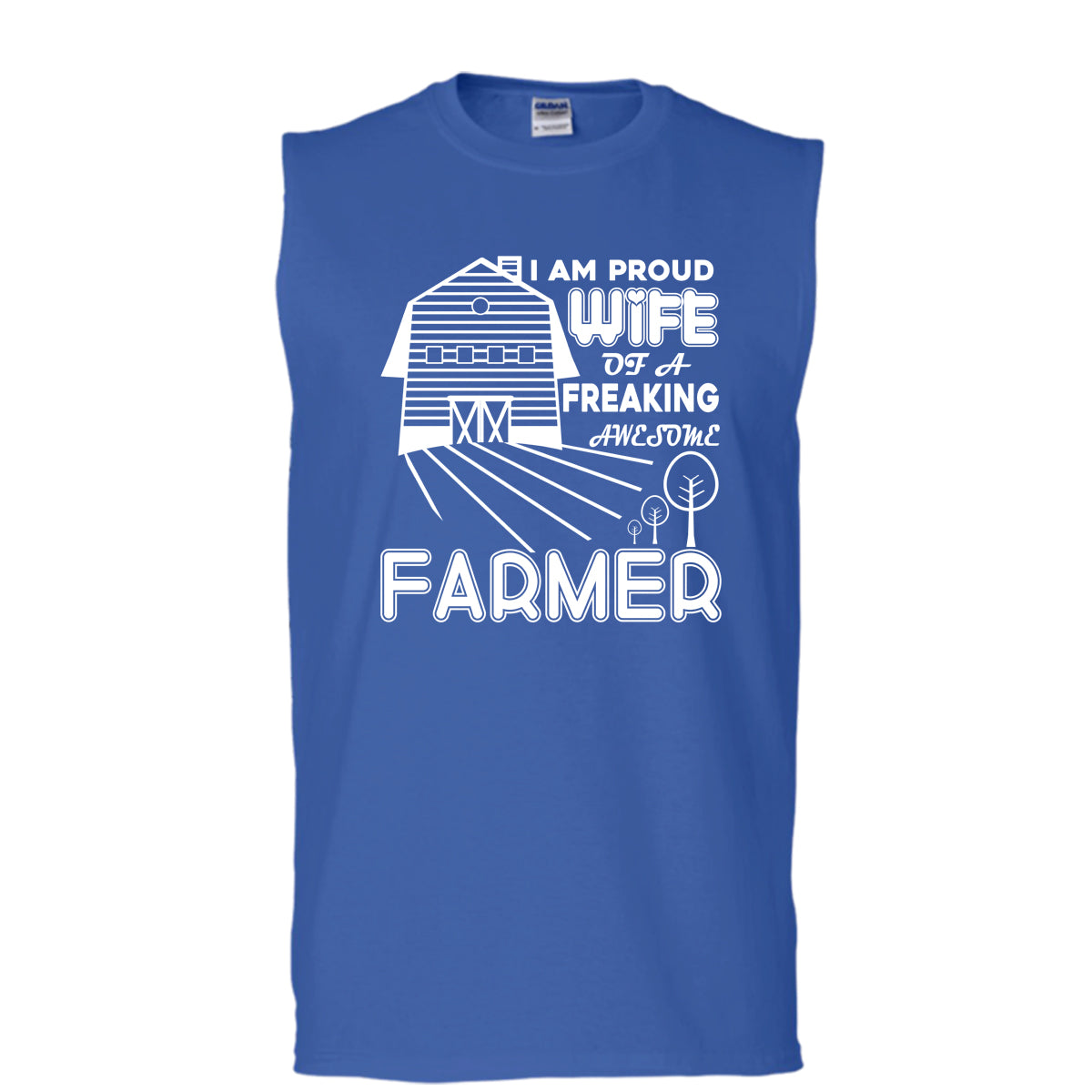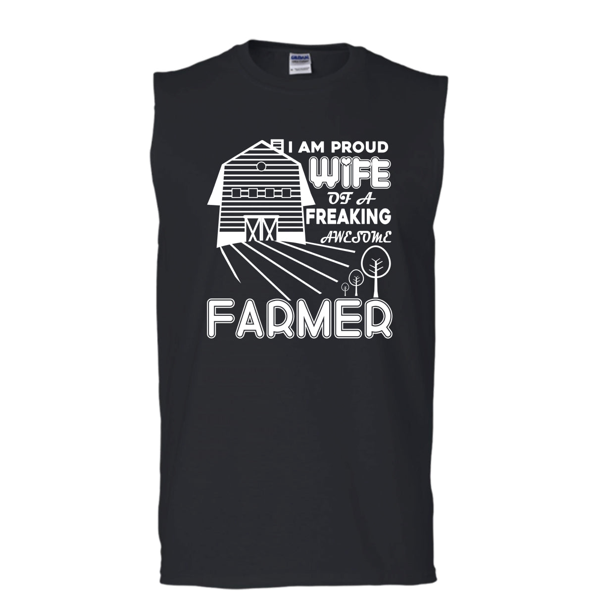 I Am A Proud Wife T Shirt, A Freaking Aweosme Farmer T Shirt, Cool T Shirt (Men's Cotton Sleeveless)