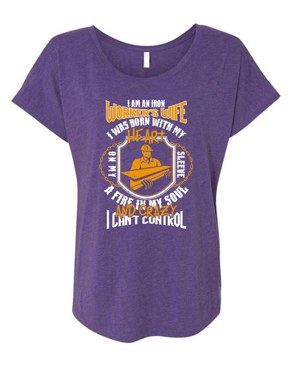 I Am An Ironworker's Wife T Shirt, I Can't Control T Shirt, Cool Shirt (Ladies' Triblend Dolman Sleeve)