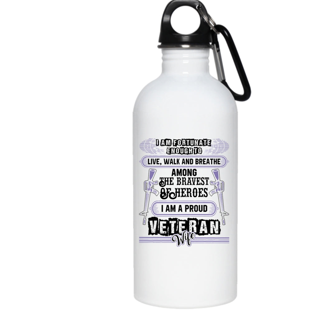 I Am Fortunate Enough To Live 20 oz Stainless Steel Bottle,I Am A Proud Veteran Wife Outdoor Sports Water Bottle