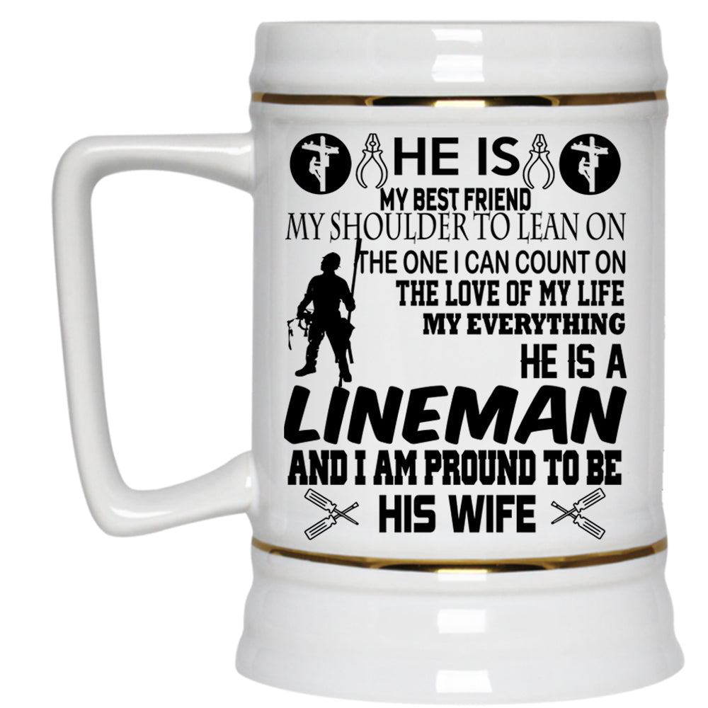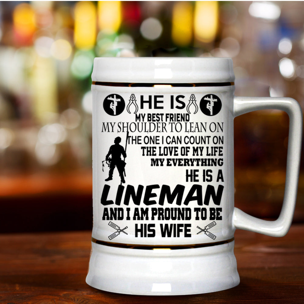 I Am Phoud To Be His Wife Beer Stein 22oz, He Is A Lineman Beer Mug