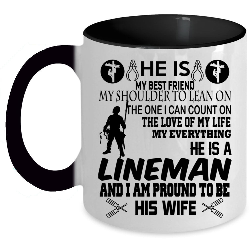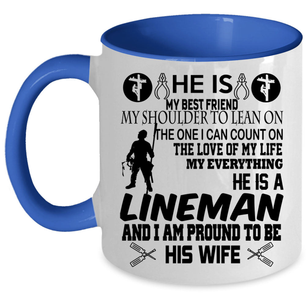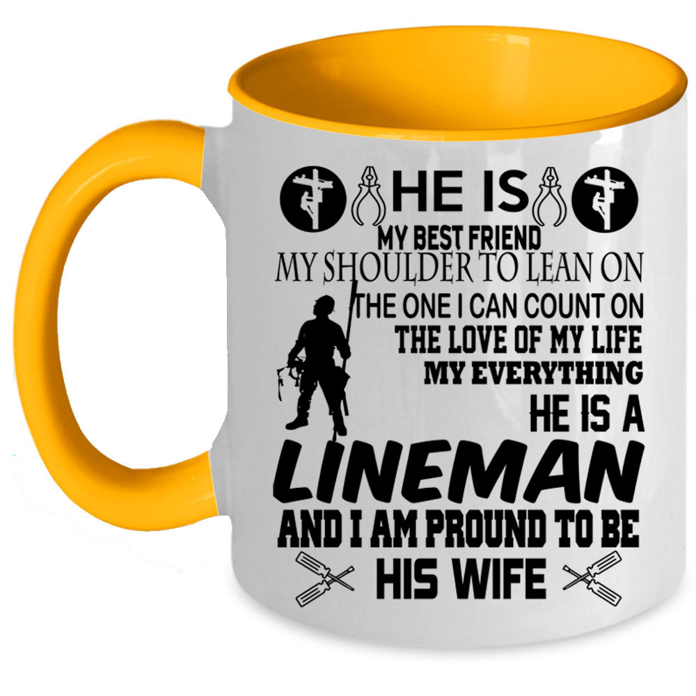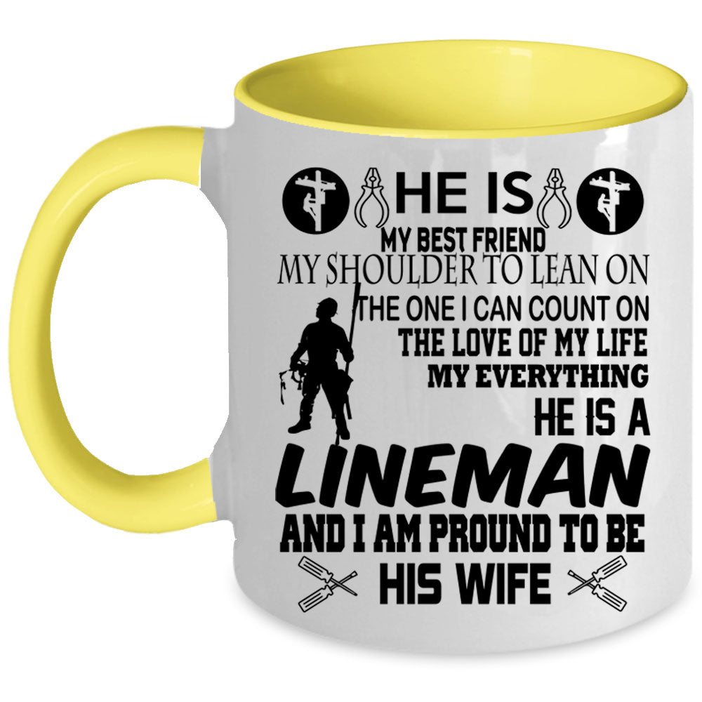 I Am Phoud To Be His Wife Coffee Mug, He Is A Lineman Accent Mug