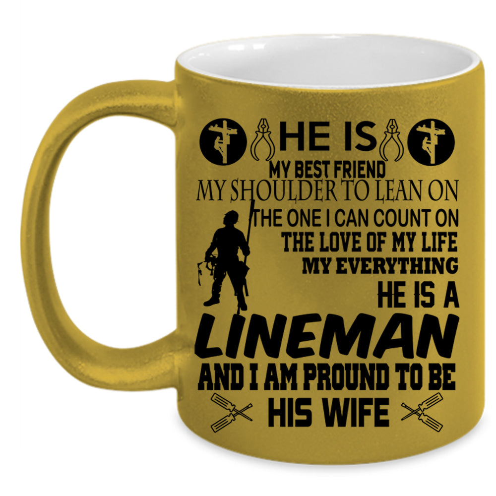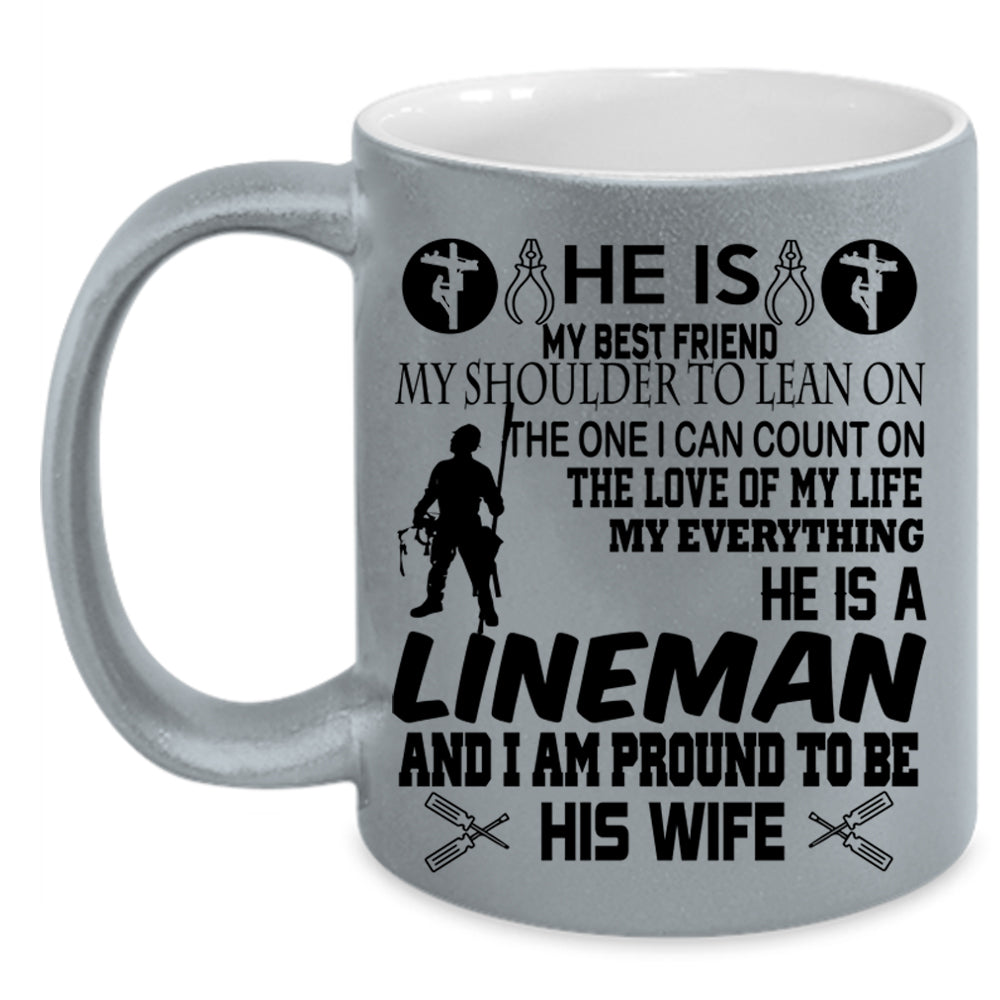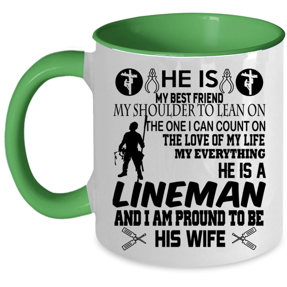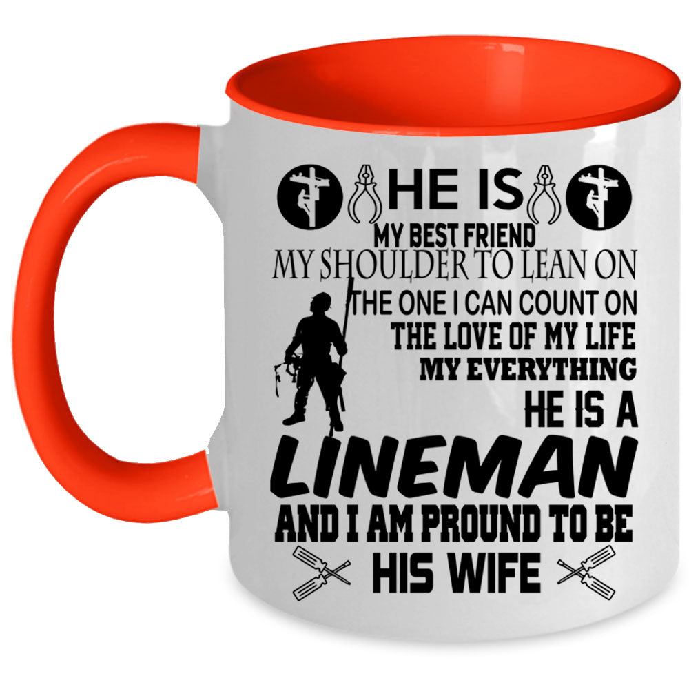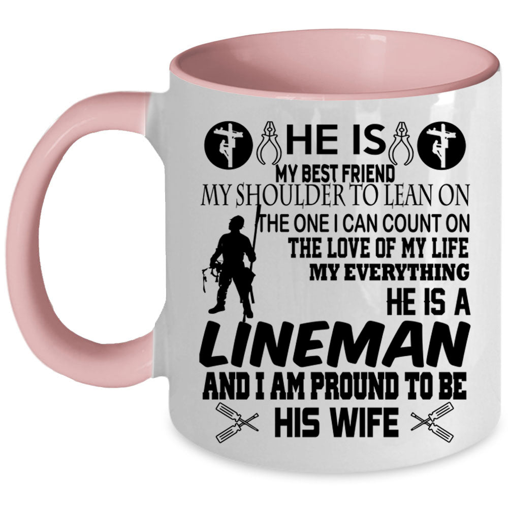 I Am Phoud To Be His Wife Coffee Mug, He Is A Lineman Accent Mug