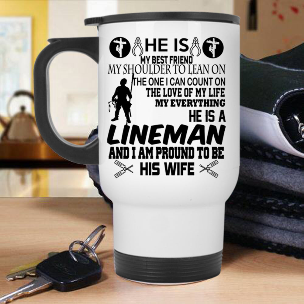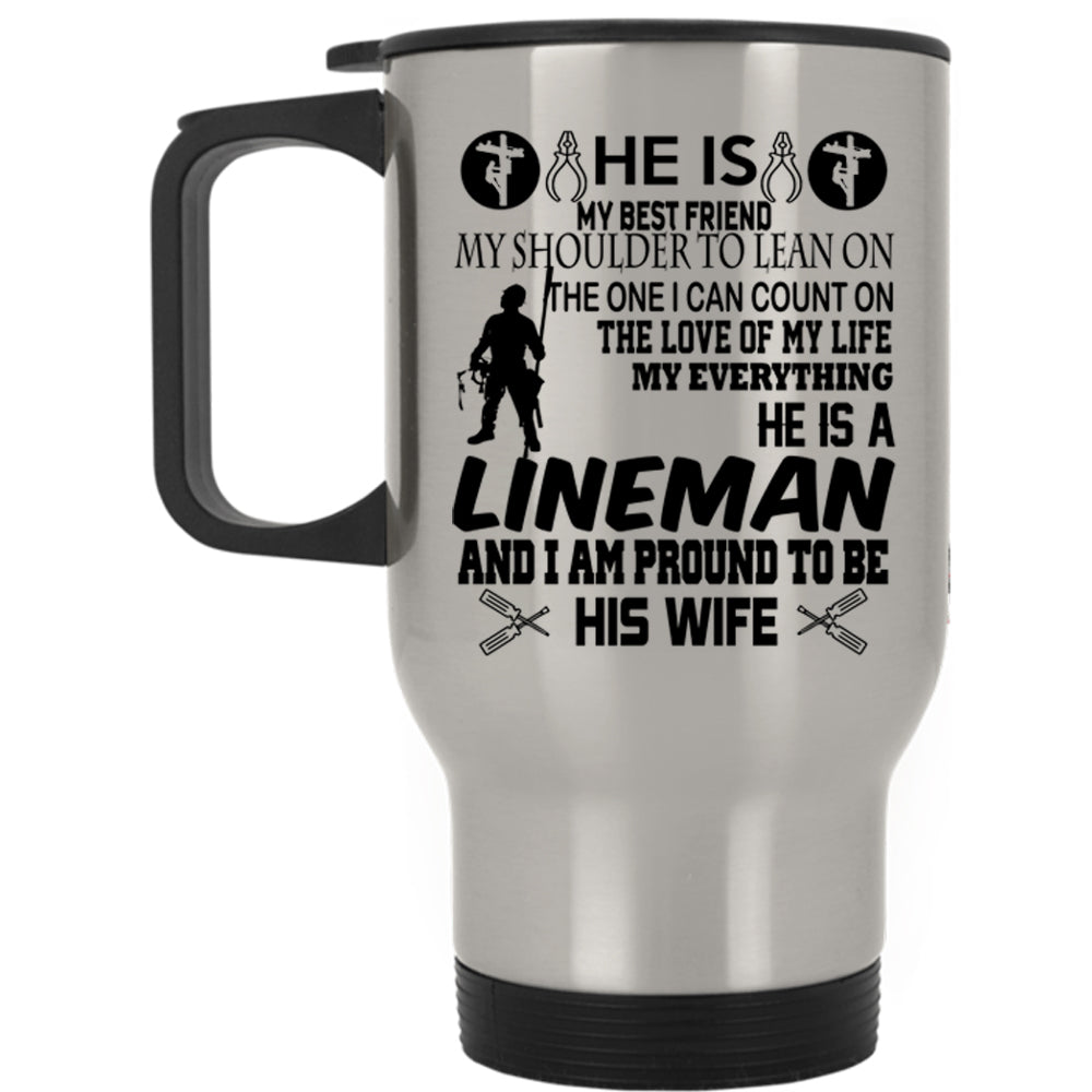 I Am Phoud To Be His Wife Travel Mug, He Is A Lineman Mug