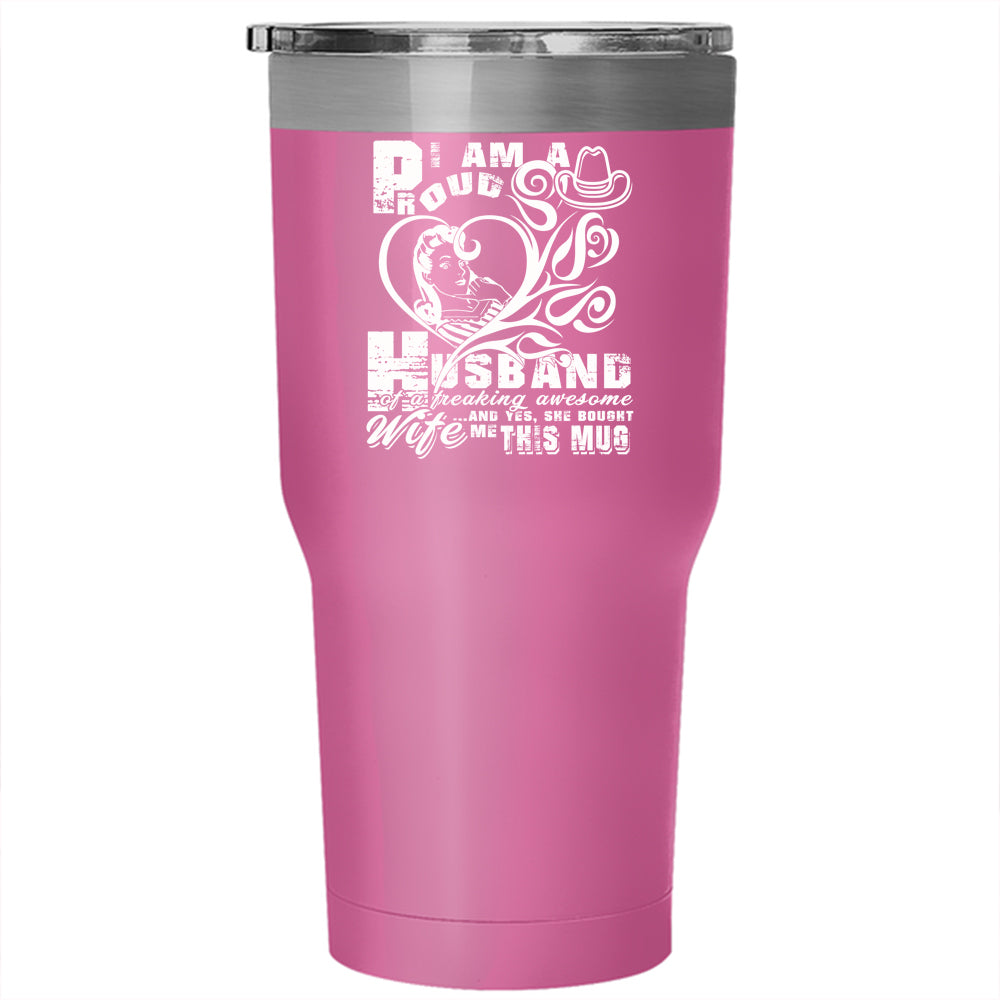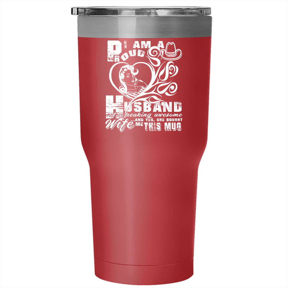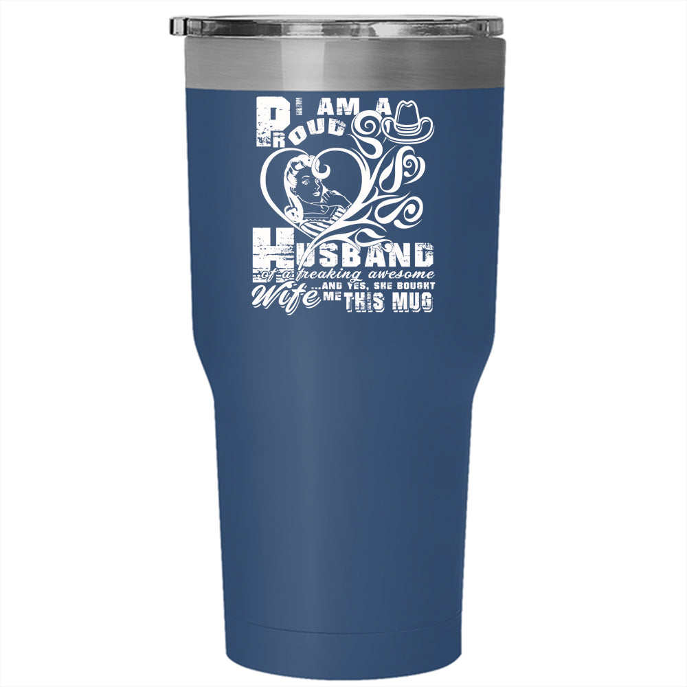 I Am Proud A Husband Of An Awesome Wife Tumbler 30 oz Stainless Steel, Marry Travel Mug