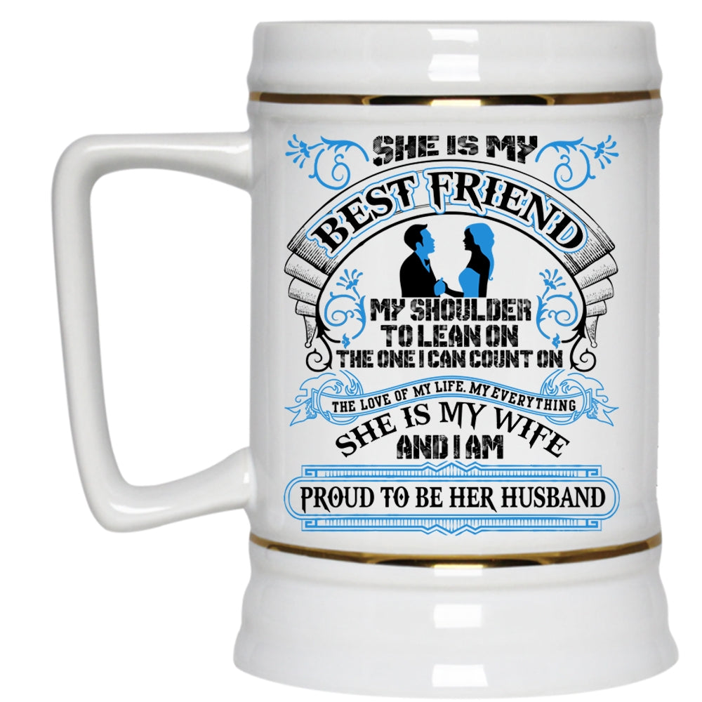 I Am Proud To Be Her Husband Beer Stein 22oz, She Is My Best Friend Beer Mug