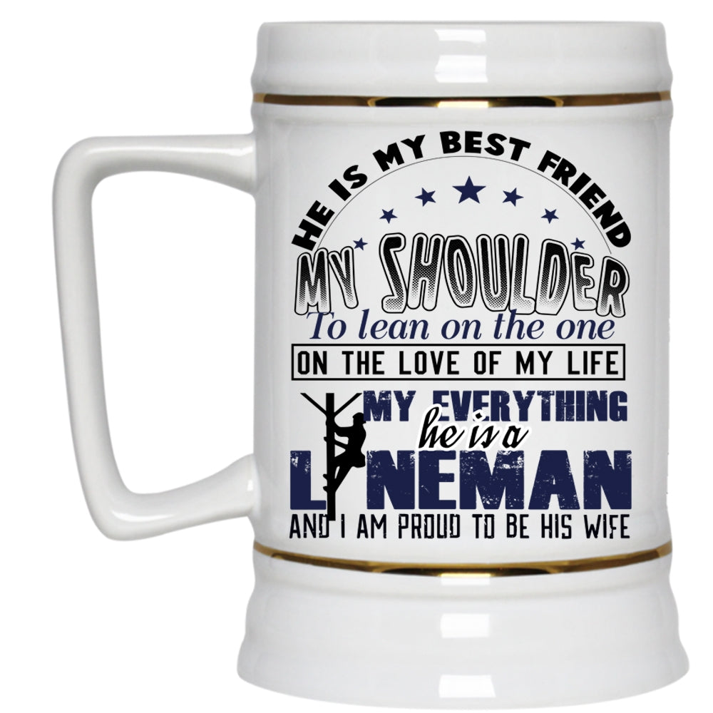 I Am Proud To Be His Wife Beer Stein 22oz, He Is A Lineman Beer Mug