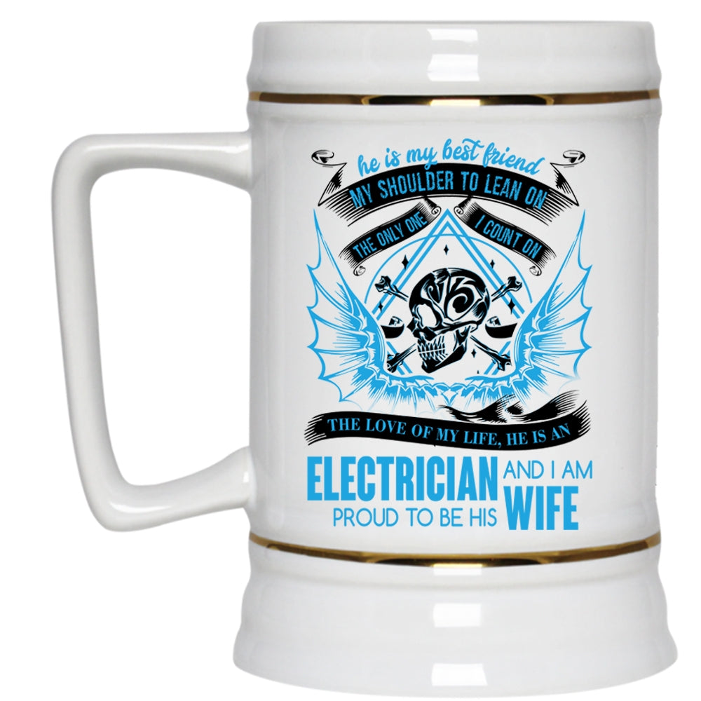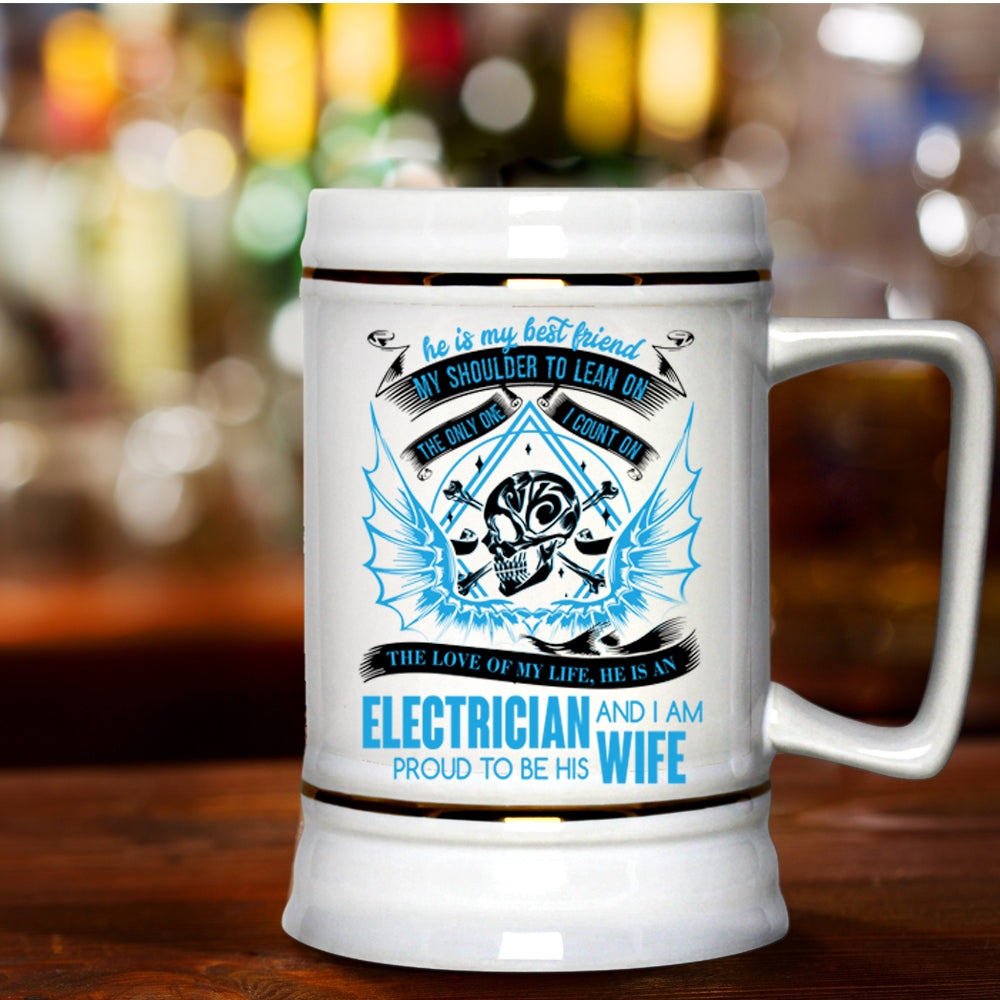 I Am Proud To Be His Wife Beer Stein 22oz, He Is An Electrician Beer Mug