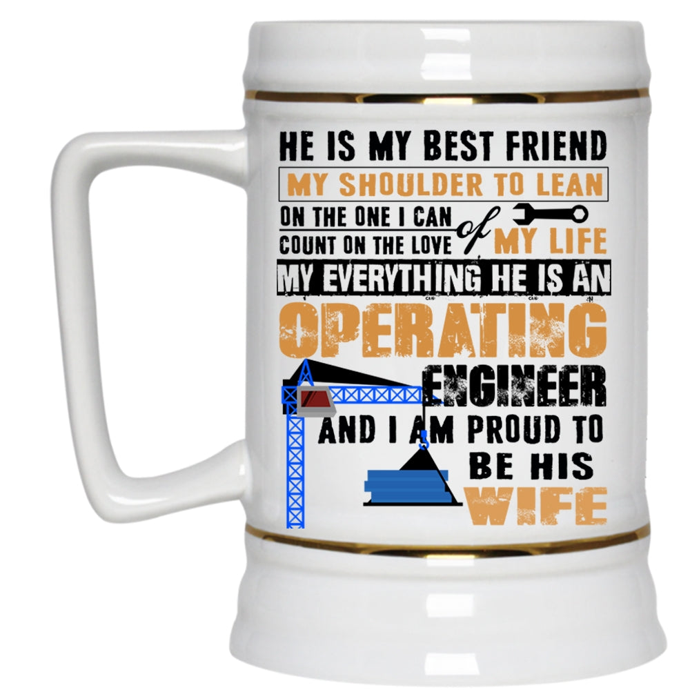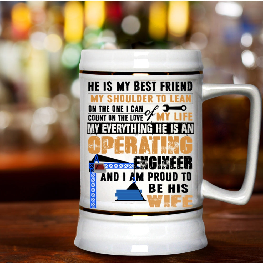 I Am Proud To Be His Wife Beer Stein 22oz, He Is An Operating Engineer Beer Mug