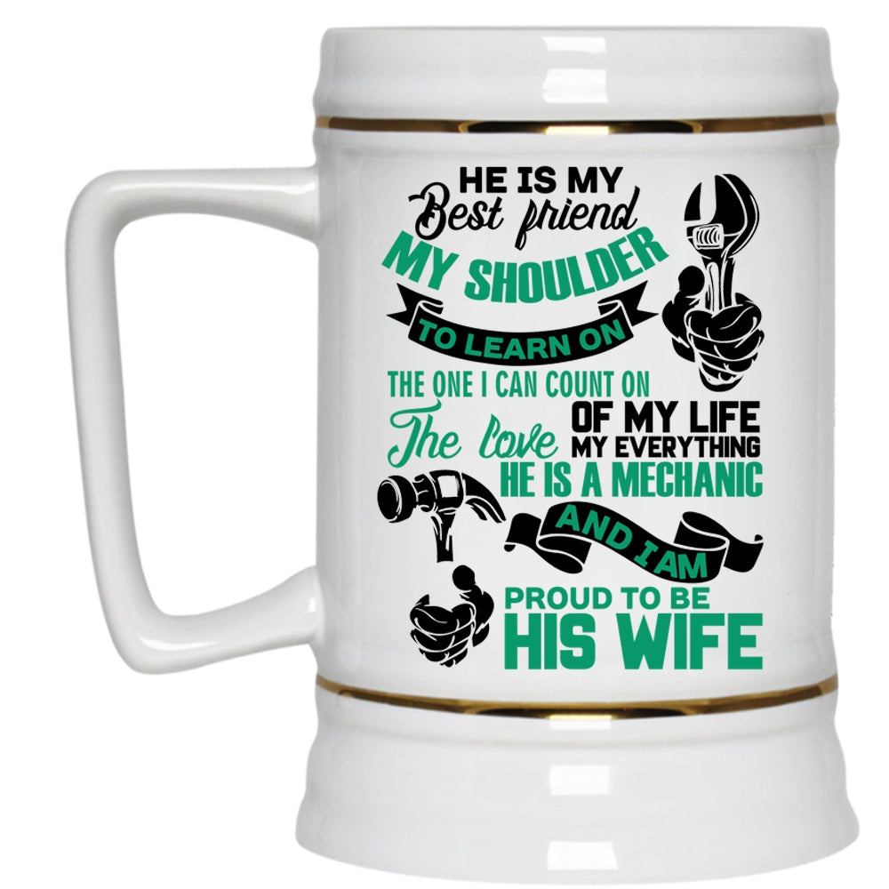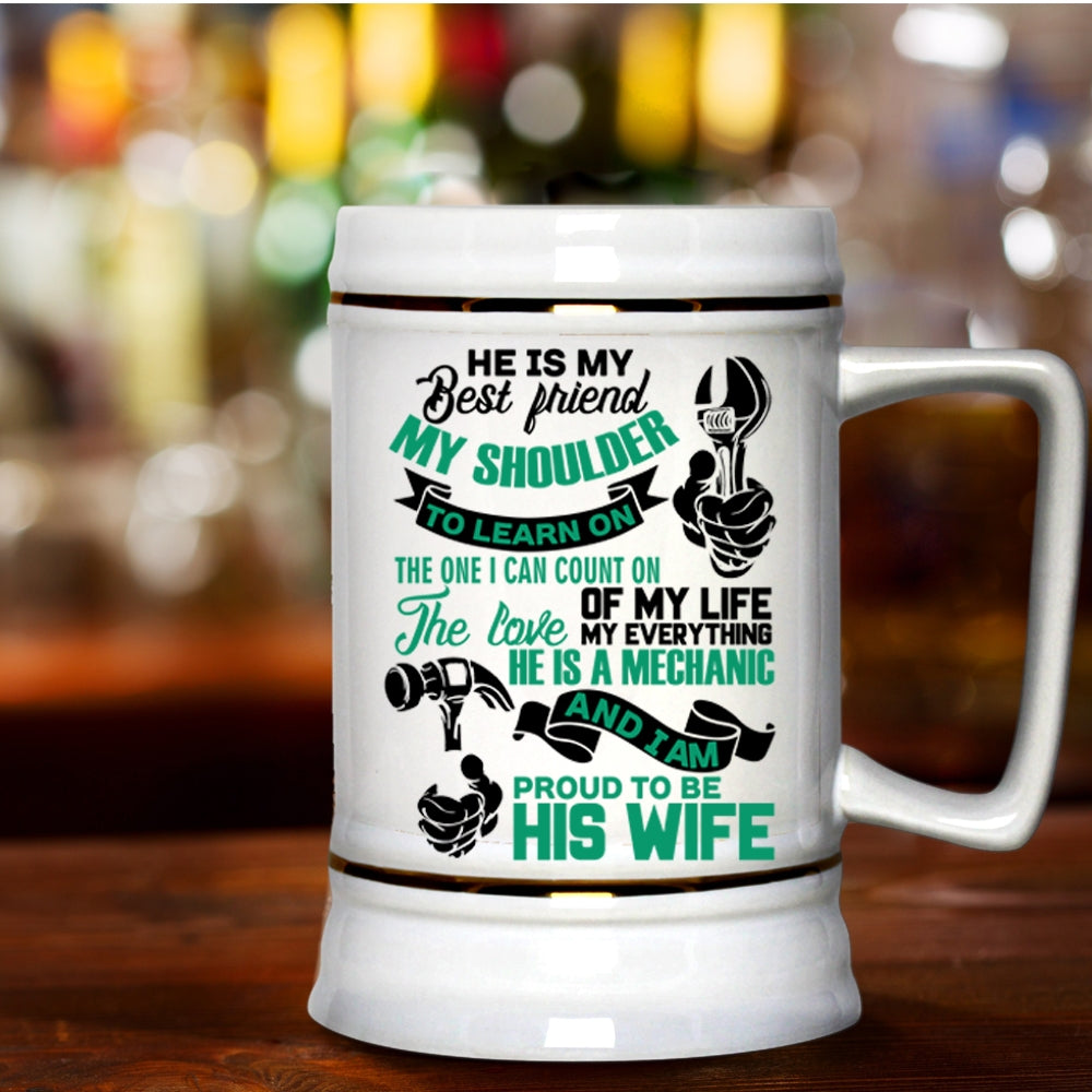 I Am Proud To Be His Wife Beer Stein 22oz, He Is My Best Friend Beer Mug