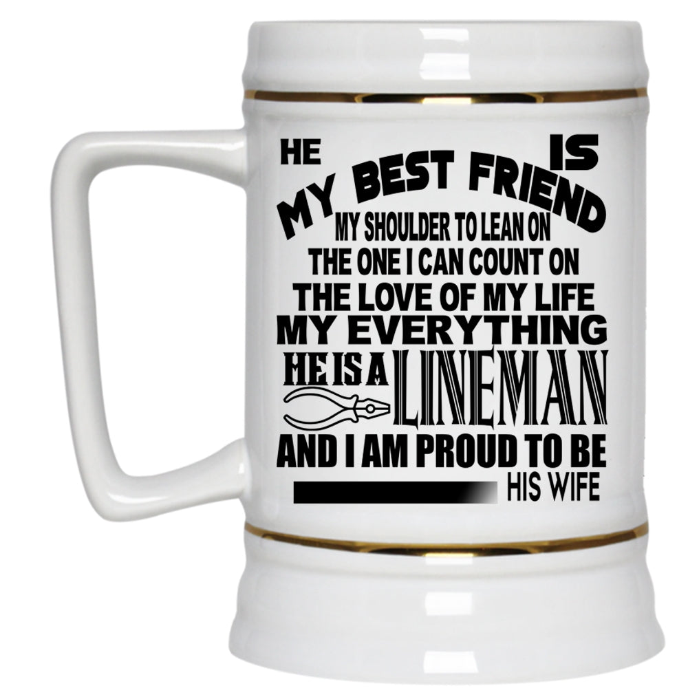I Am Proud To Be His Wife Beer Stein 22oz, He Is My Bestfriend He Is A Lineman Beer Mug