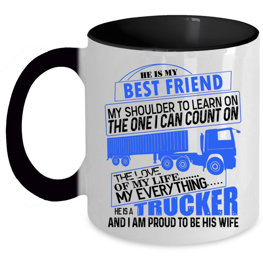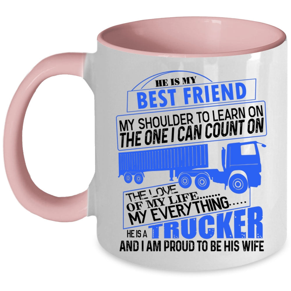 I Am Proud To Be His Wife Coffee Mug, He Is A Trucker Accent Mug