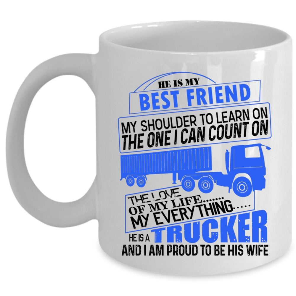 I Am Proud To Be His Wife Coffee Mug, He Is A Trucker Cup