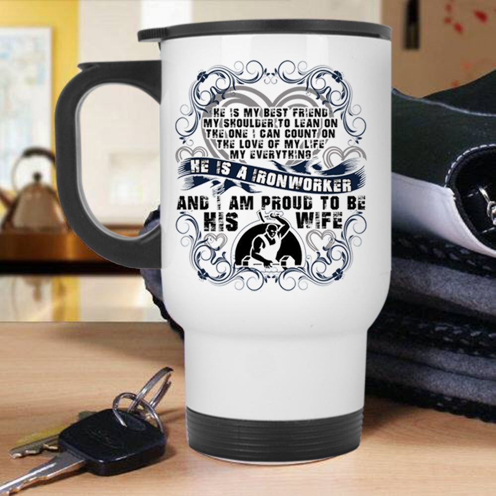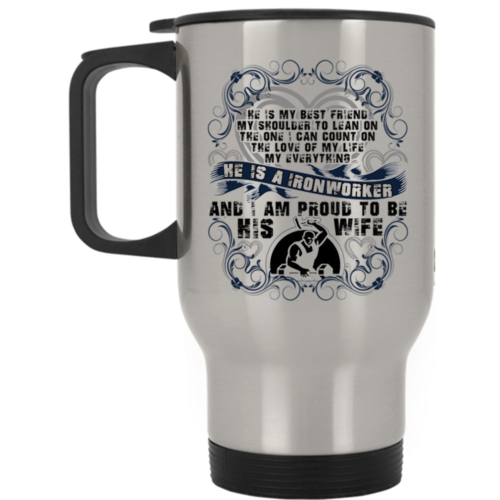 I Am Proud To Be His Wife Travel Mug, He Is A Ironworker Mug
