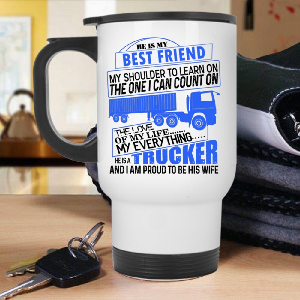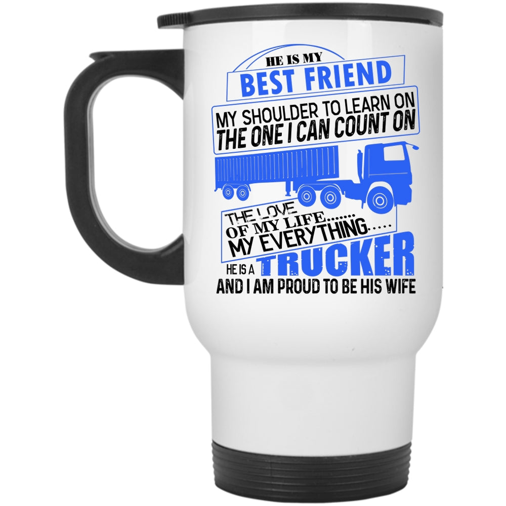 I Am Proud To Be His Wife Travel Mug, He Is A Trucker Mug