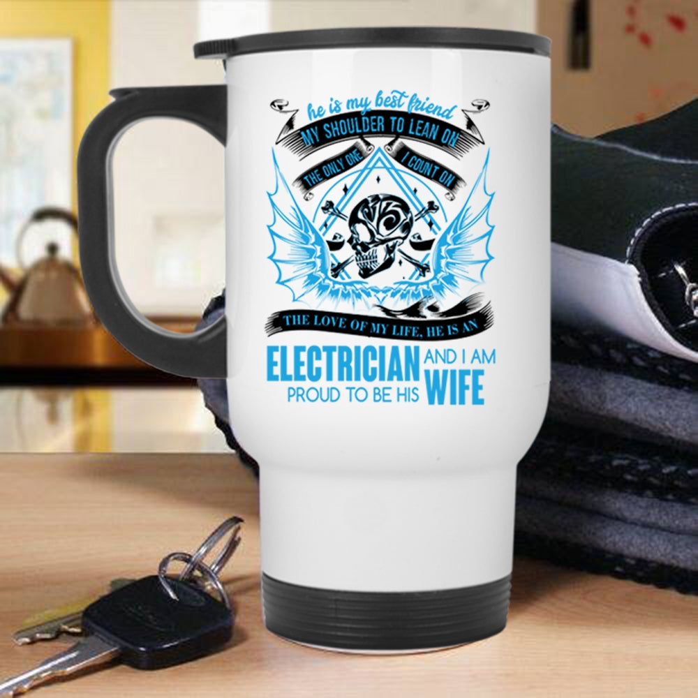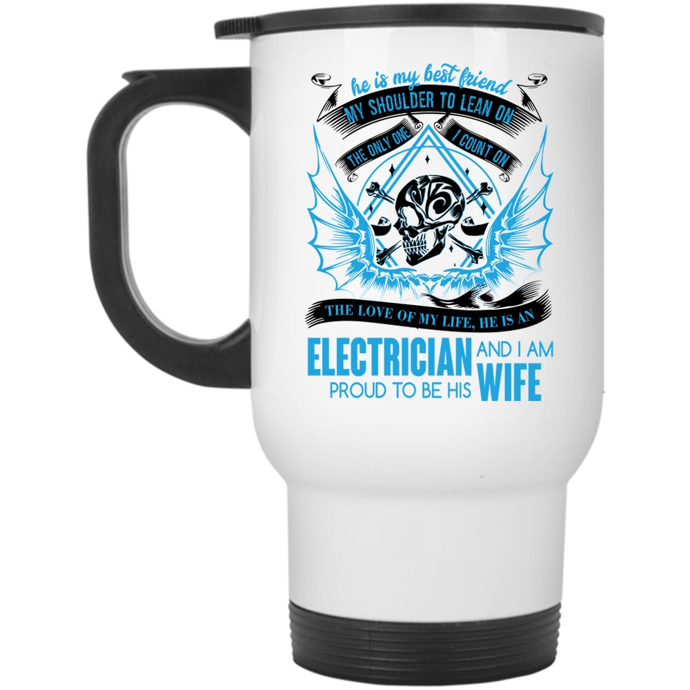 I Am Proud To Be His Wife Travel Mug, He Is An Electrician Mug