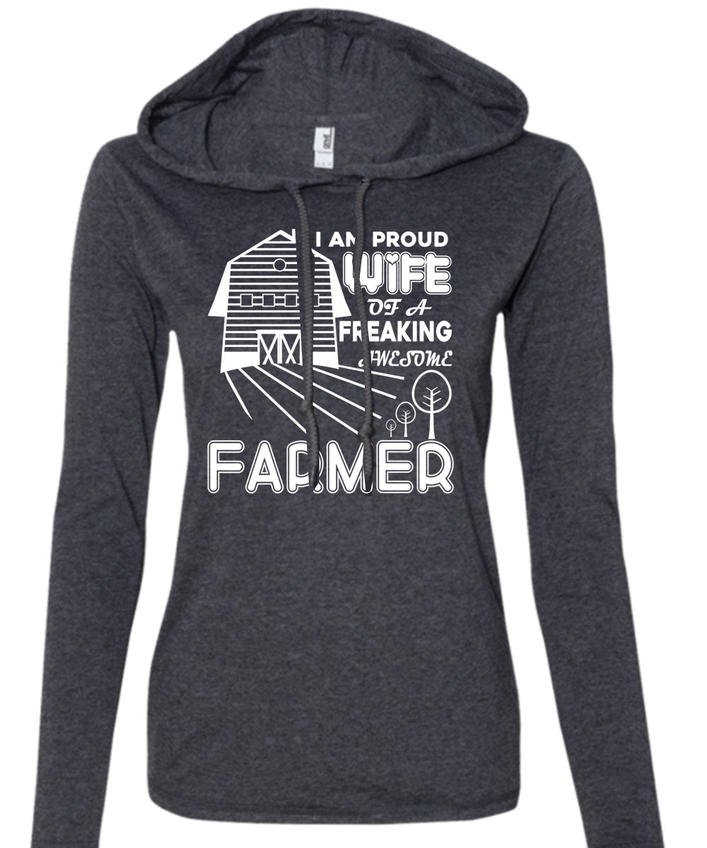 I Am Proud Wife Of A Freaking Awesome Farmer T Shirt, Being A Farmer T Shirt (Anvil Ladies Ringspun Hooded)