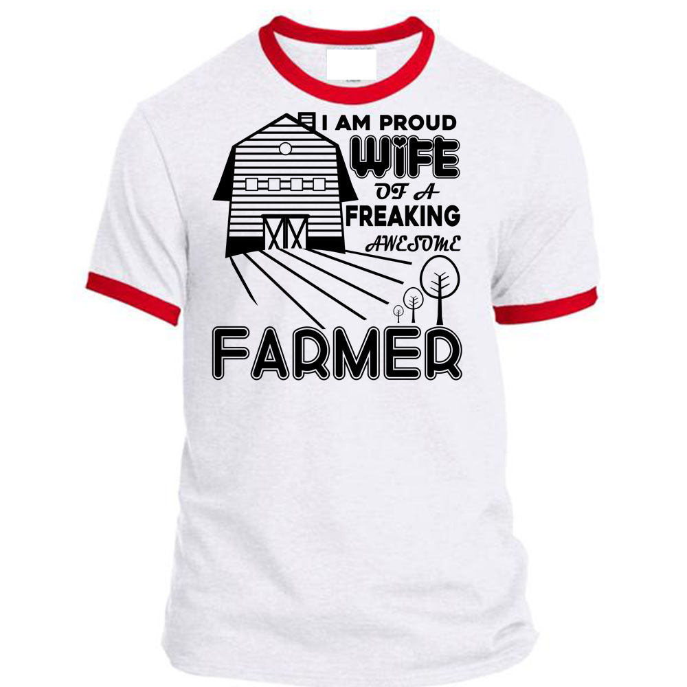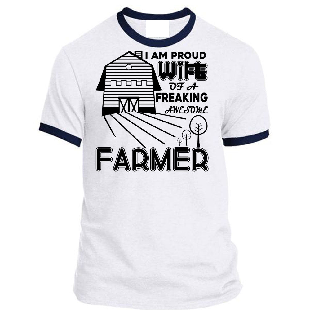 I Am Proud Wife Of A Freaking Awesome Farmer T Shirt, I Love Farming T Shirt, Awesome T-Shirts