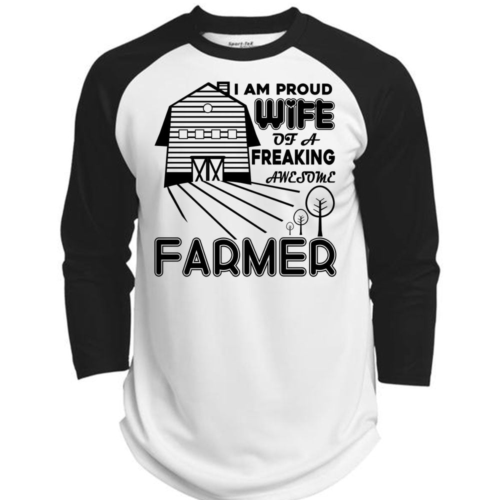 I Am Proud Wife Of A Freaking Awesome Farmer T Shirt, I Love Farming T Shirt, Awesome T-Shirts (Polyester Game Baseball Jersey)