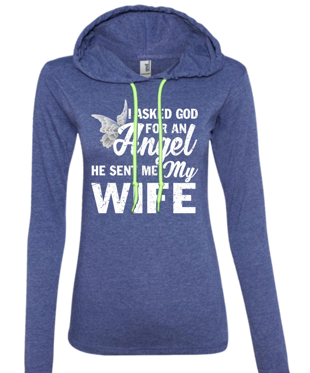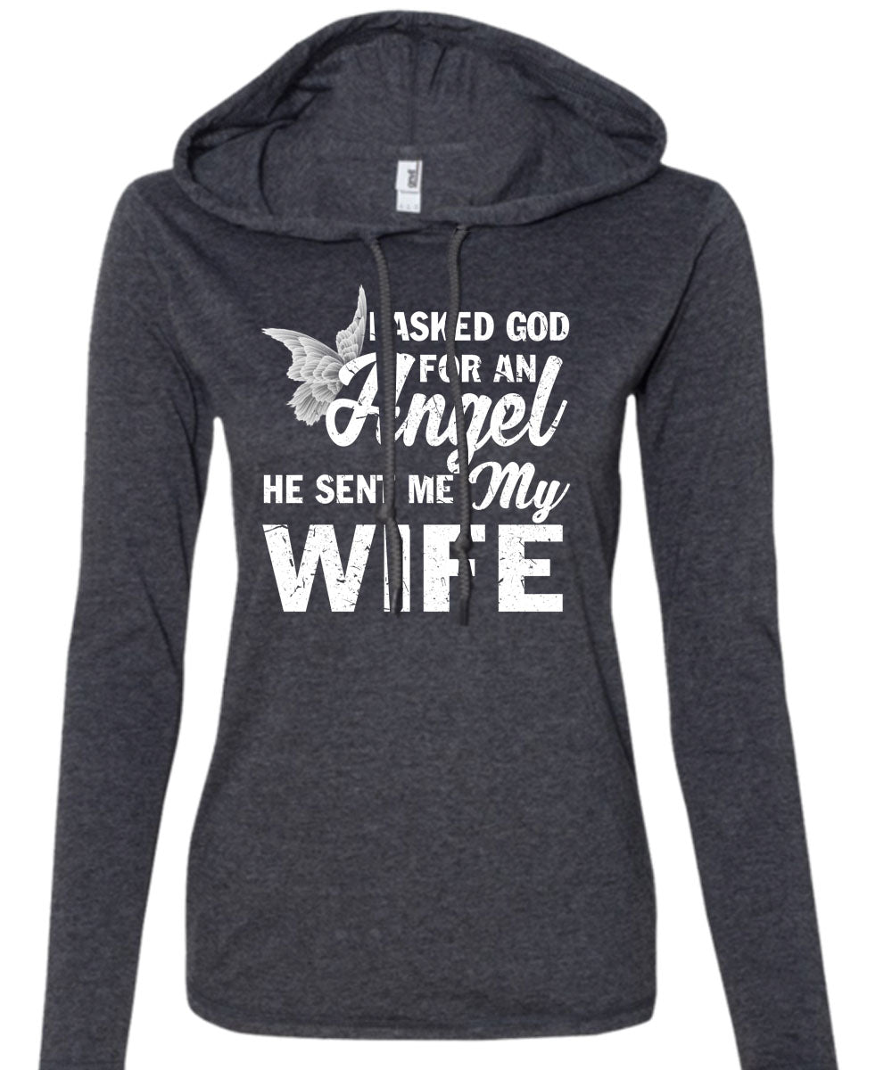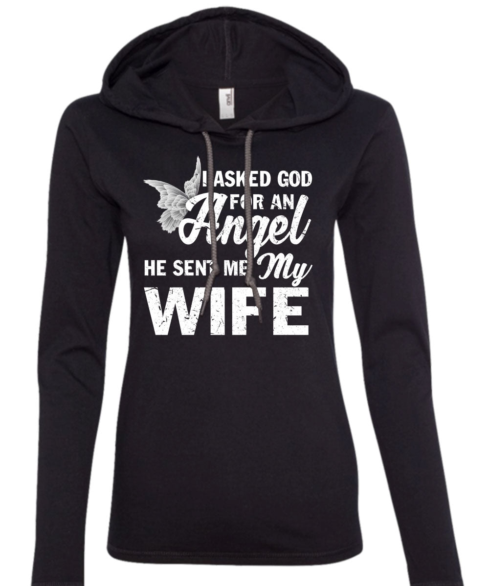 I Asked God For An Angel T Shirt, He Sent Me My Wife T Shirt (Anvil Ladies Ringspun Hooded)