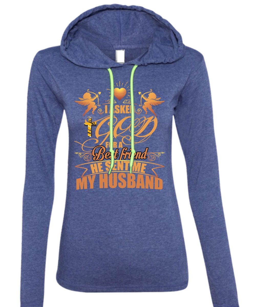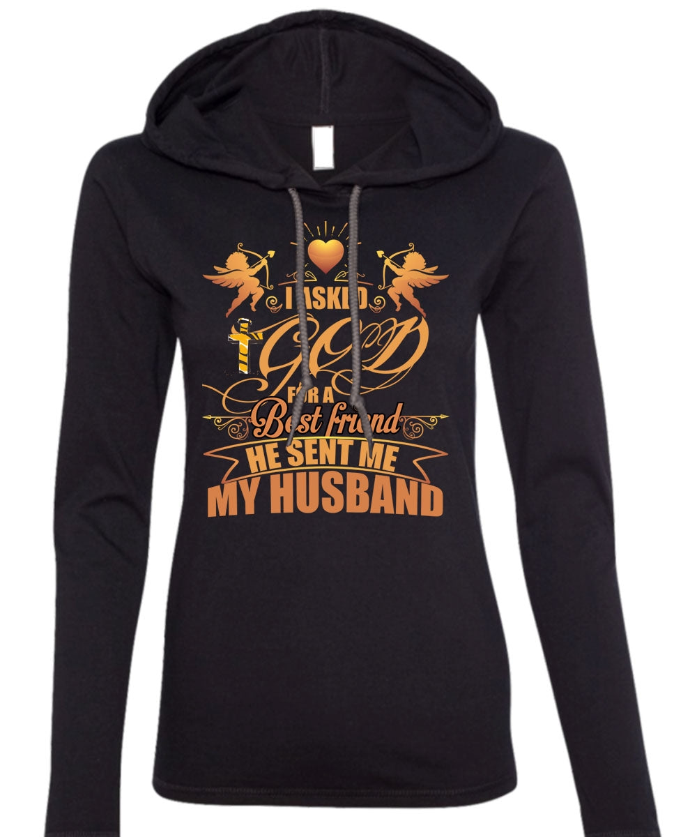 I Asked Good For Best Friend T Shirt, He Sent Me My Husband T Shirt (Anvil Ladies Ringspun Hooded)