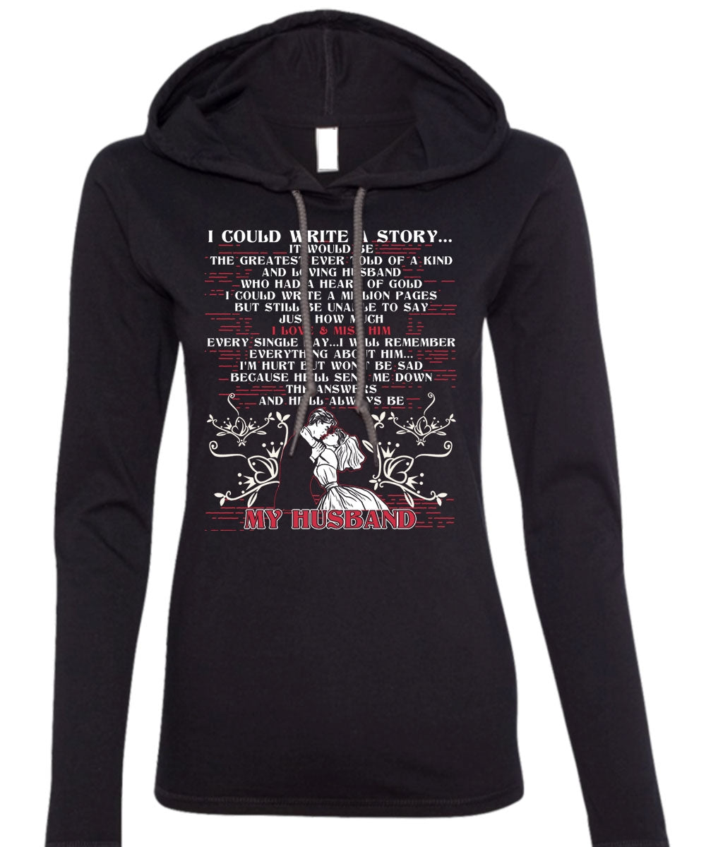 I Could Write A Story T Shirt, He'll Always Be My Husband T Shirt (Anvil Ladies Ringspun Hooded)