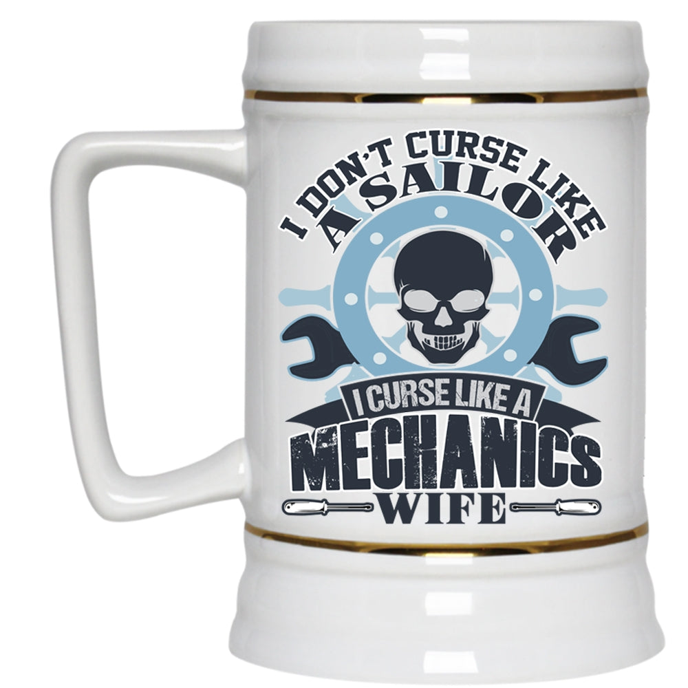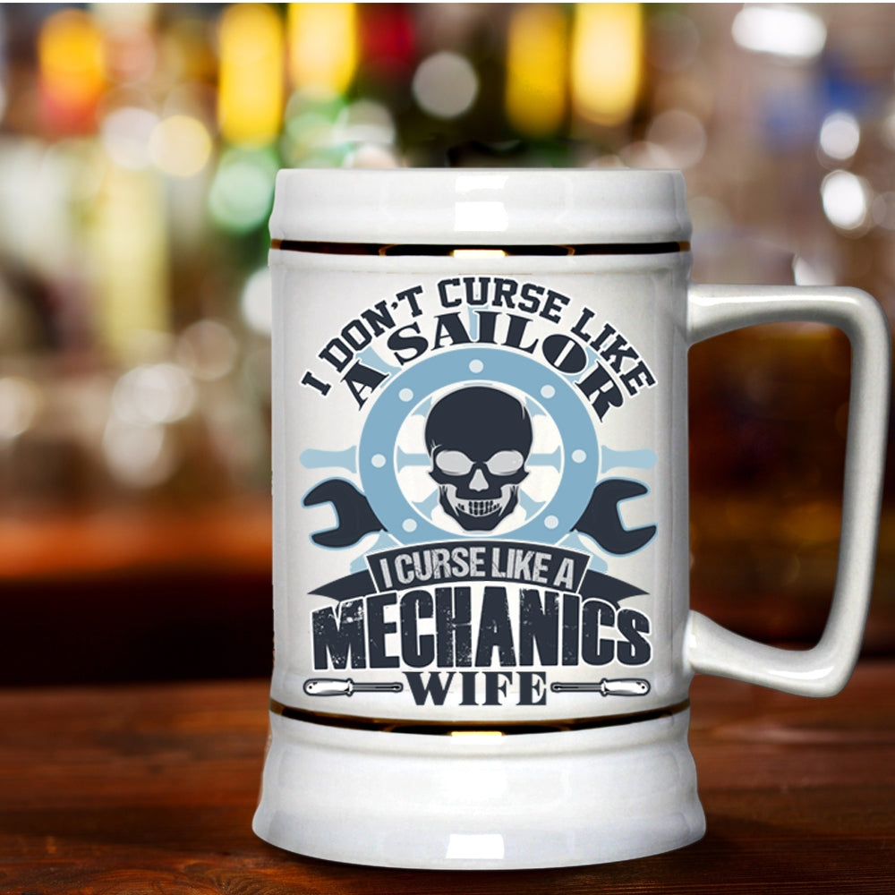 I Curse Like A Mechanic's Wife Beer Stein 22oz, I Don't Curse Like A Sailor Beer Mug