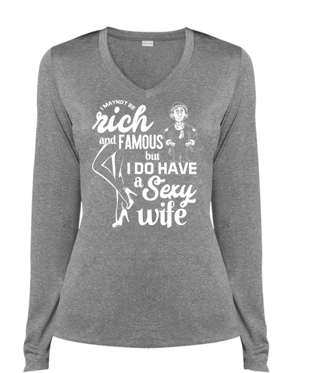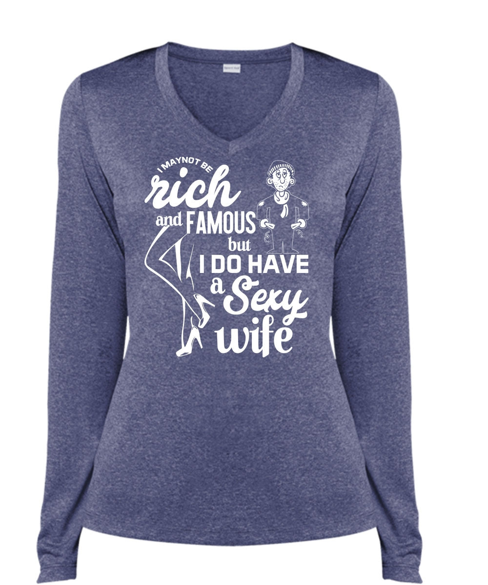 I Do Have A Wife T Shirt, I Maynot Be Rich T Shirt, Cool Shirt (Ladies LS Heather V-Neck)