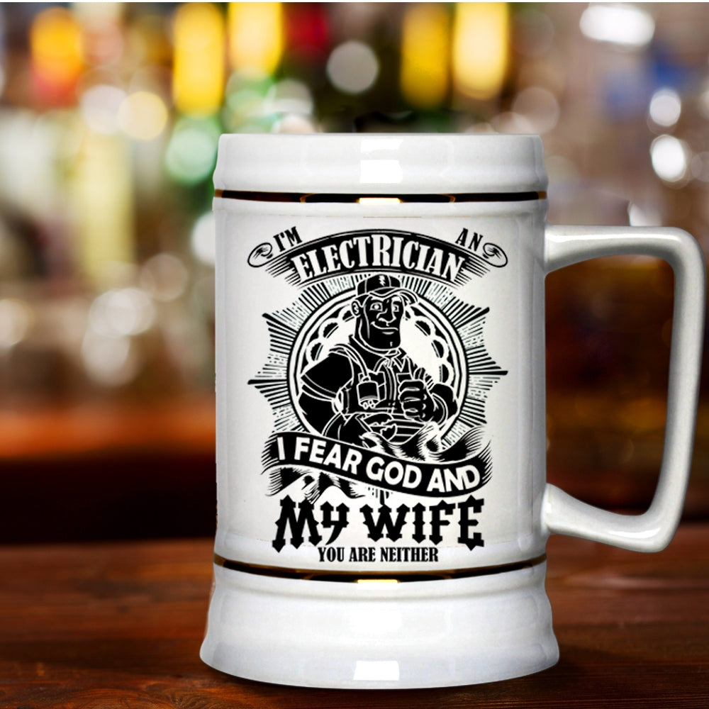 I Fear God And My Wife Beer Stein 22oz, I'm An Electrician Beer Mug