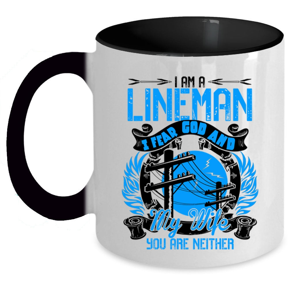 I Fear God And My Wife Coffee Mug, I Am A Lineman Accent Mug