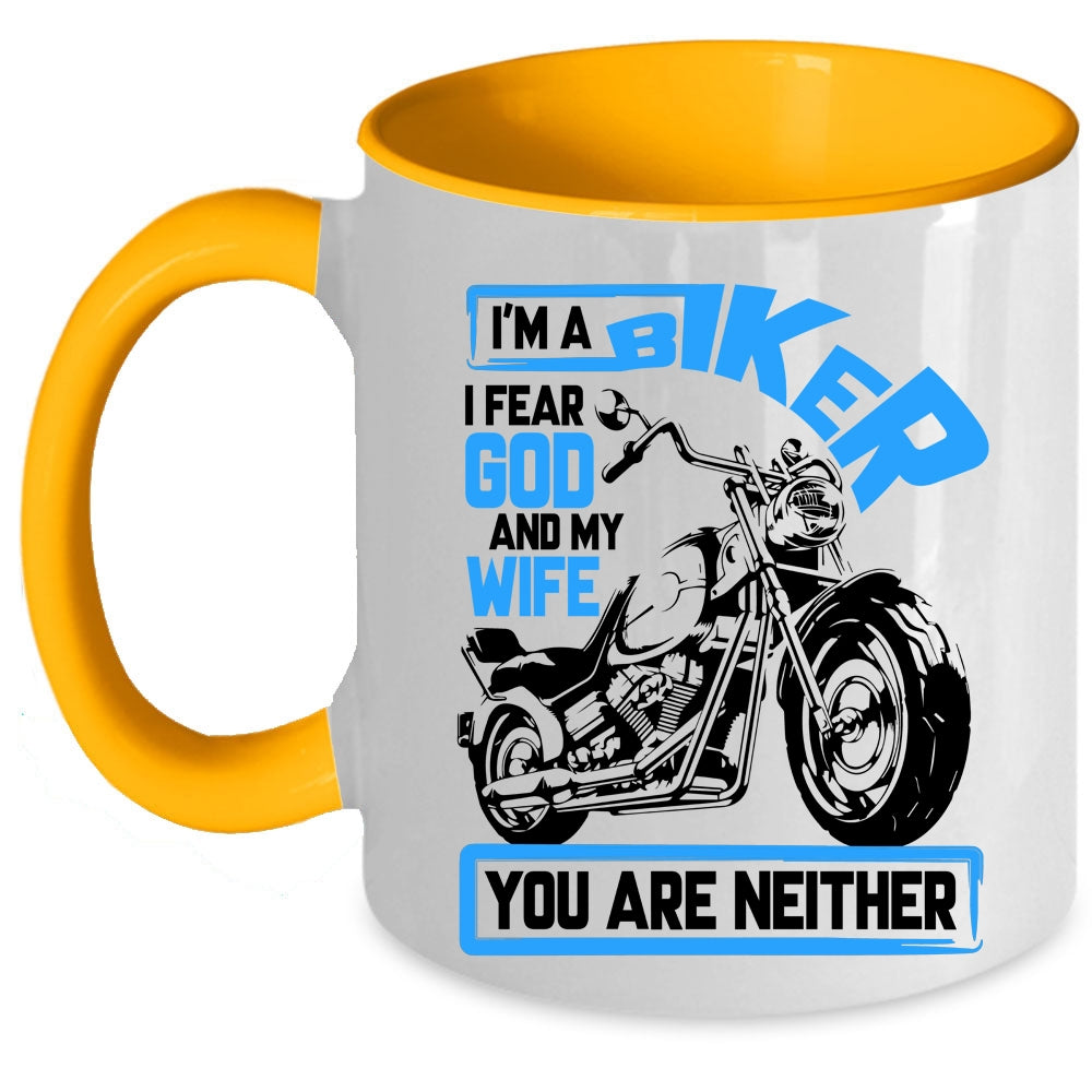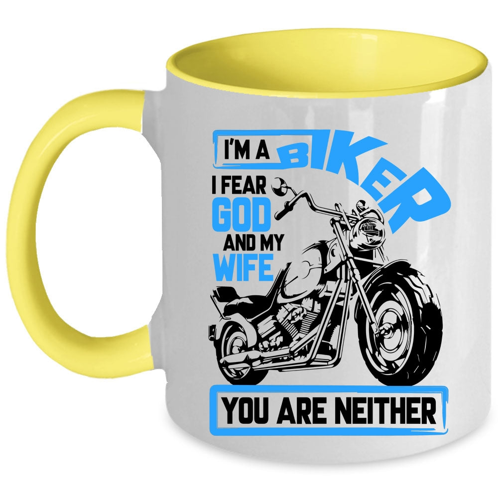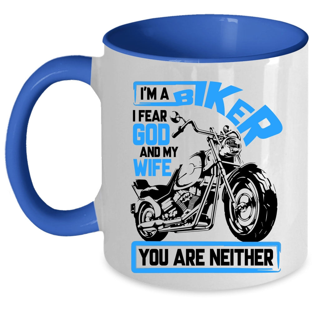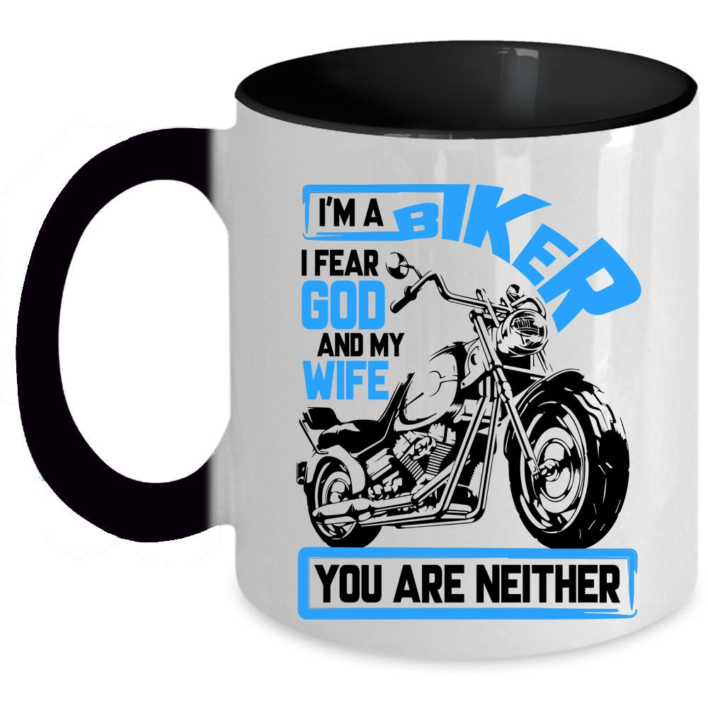 I Fear God And My Wife Coffee Mug, I'm A Biker Accent Mug