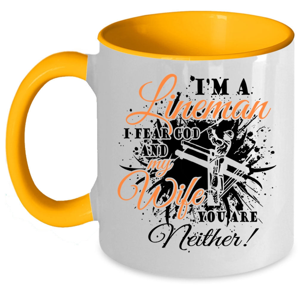 I Fear God And My Wife Coffee Mug, I'm A Lineman Accent Mug