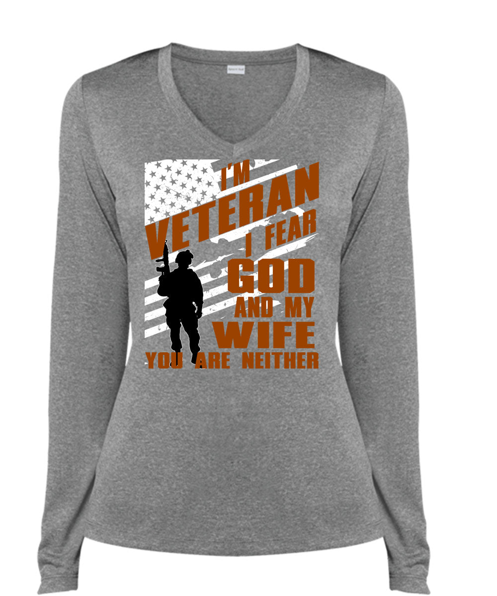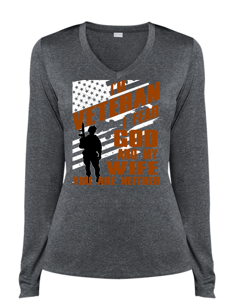 I Fear God And My Wife T Shirt, I'm Veteran T Shirt, Cool Shirt (Ladies LS Heather V-Neck)