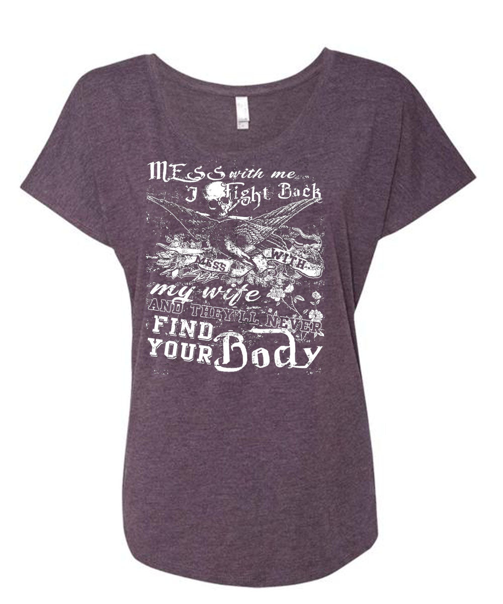 I Fight Back Mess With My Wife T Shirt, They'll Never Find Your Body T Shirt, Cool Shirt (Ladies' Triblend Dolman Sleeve)
