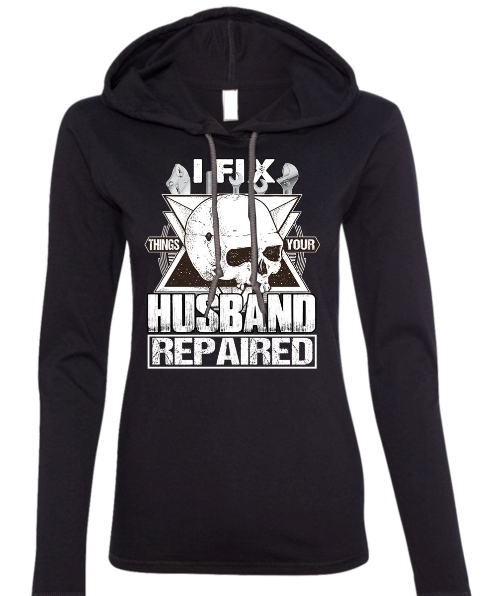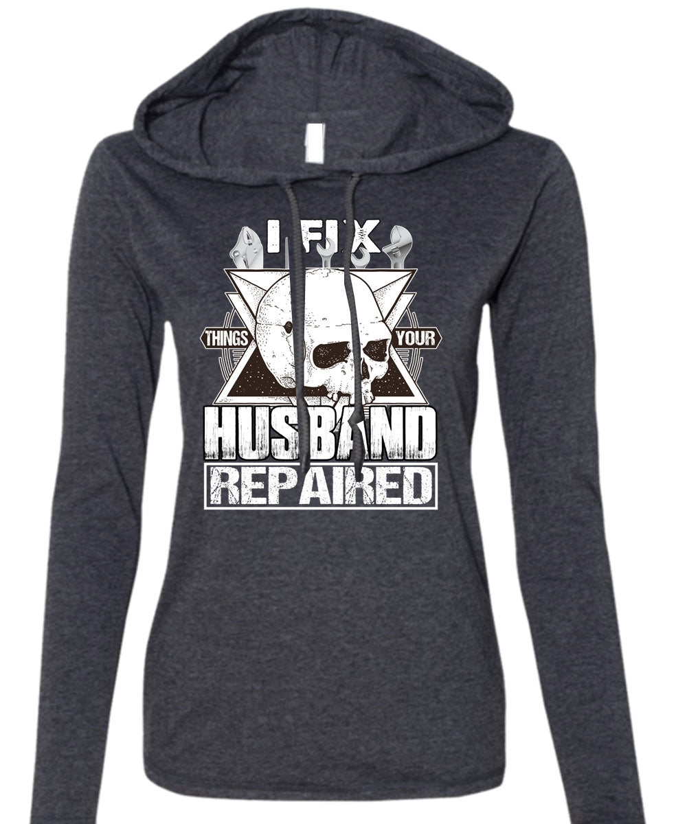 I Fix Things Your Husband Repaired T Shirt, Being A Mechanic T Shirt (Anvil Ladies Ringspun Hooded)
