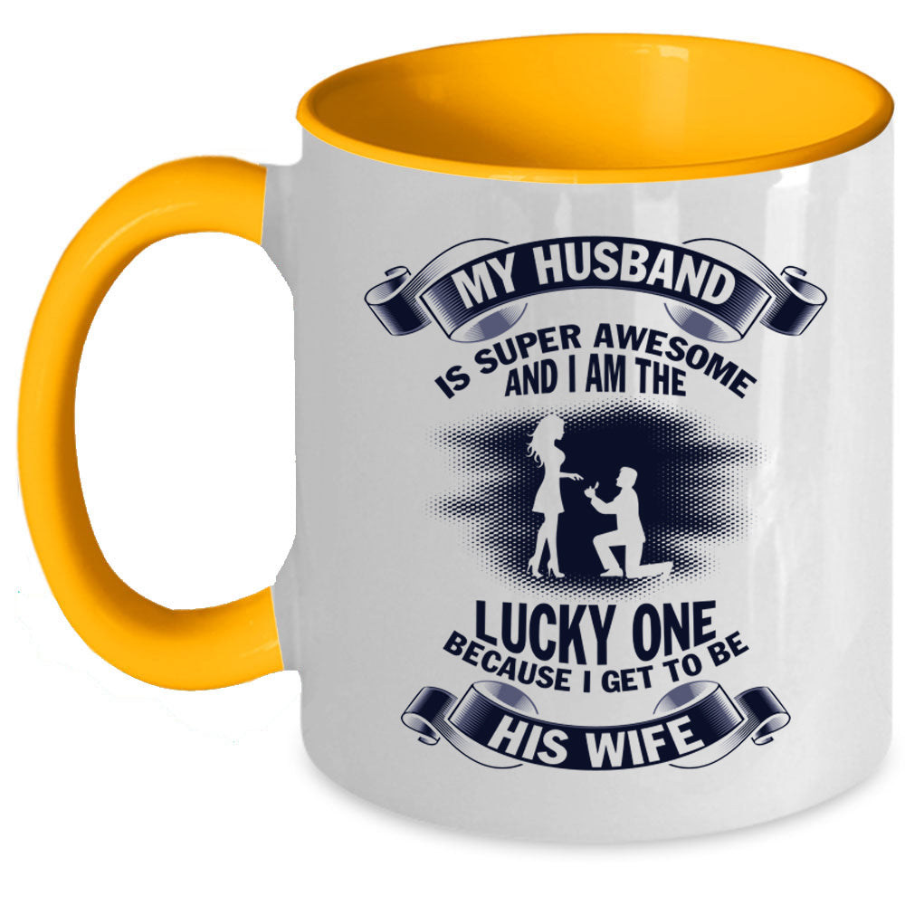 I Get To Be His Wife Coffee Mug, My Husband Is Awesome Accent Mug