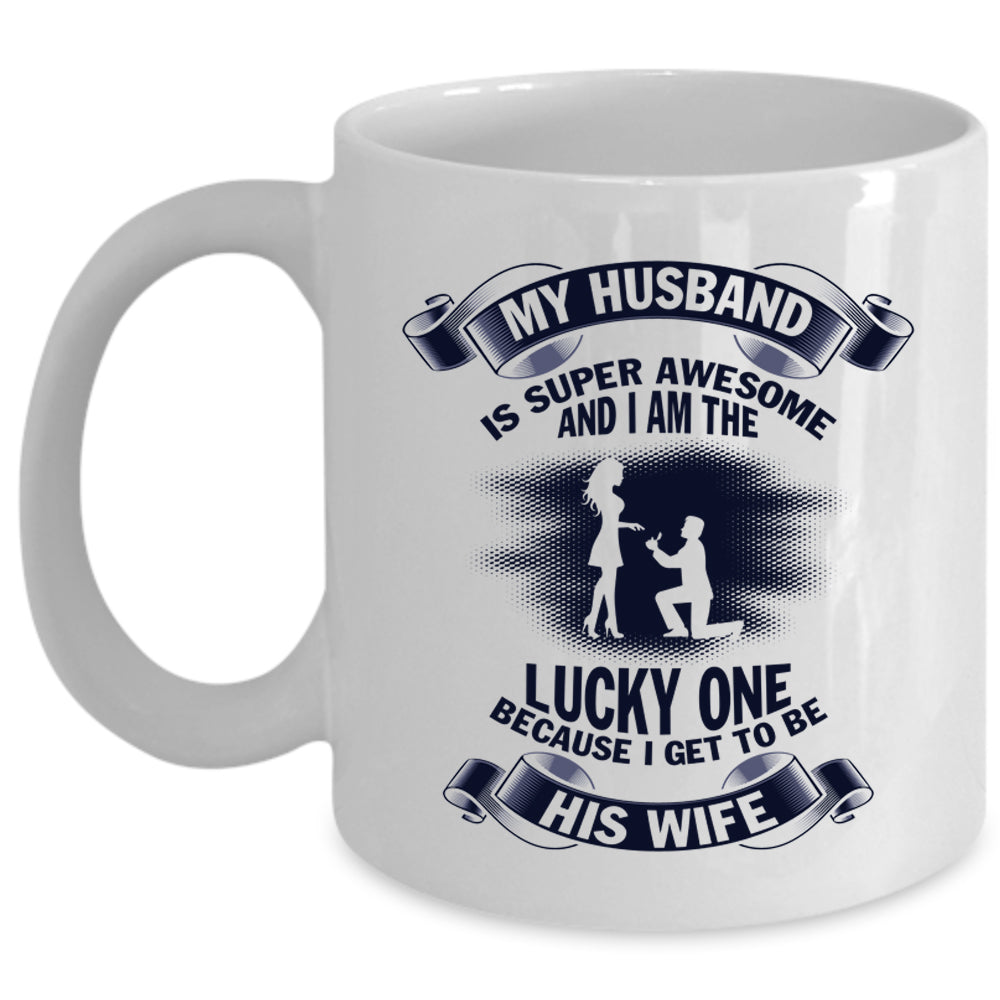 I Get To Be His Wife Coffee Mug, My Husband Is Awesome Cup