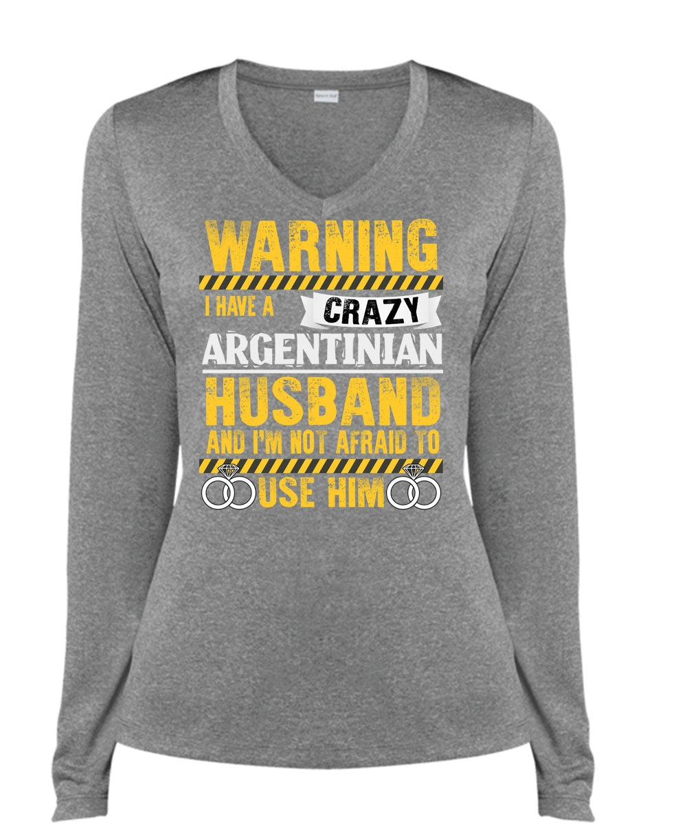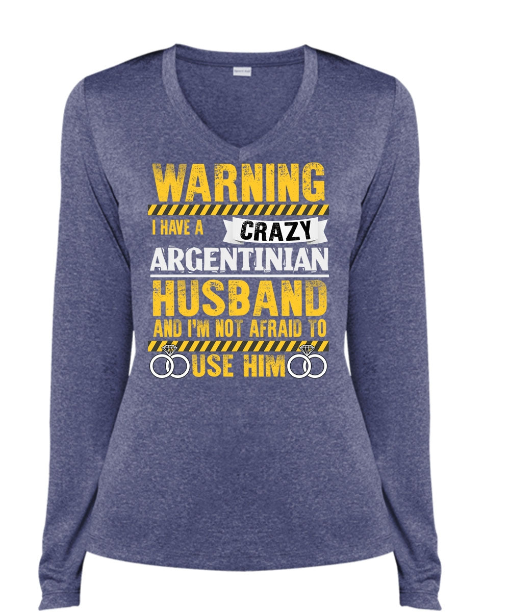 I Have A Crazy Argentinian Husband T Shirt, Being A Husband T Shirt, Cool Shirt (Ladies LS Heather V-Neck)