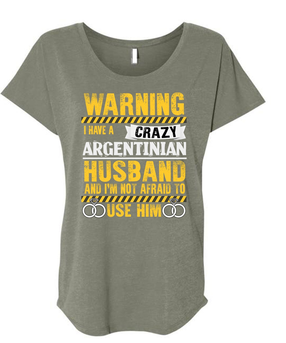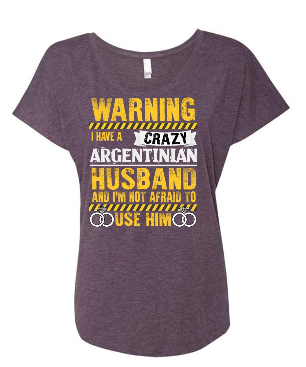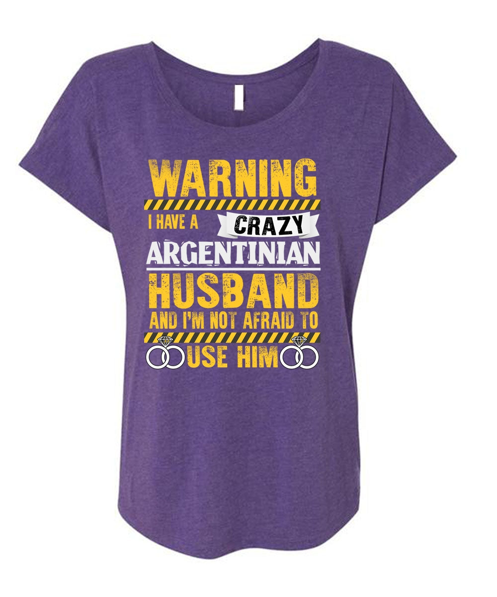 I Have A Crazy Argentinian Husband T Shirt, Being A Husband T Shirt, Cool Shirt (Ladies' Triblend Dolman Sleeve)