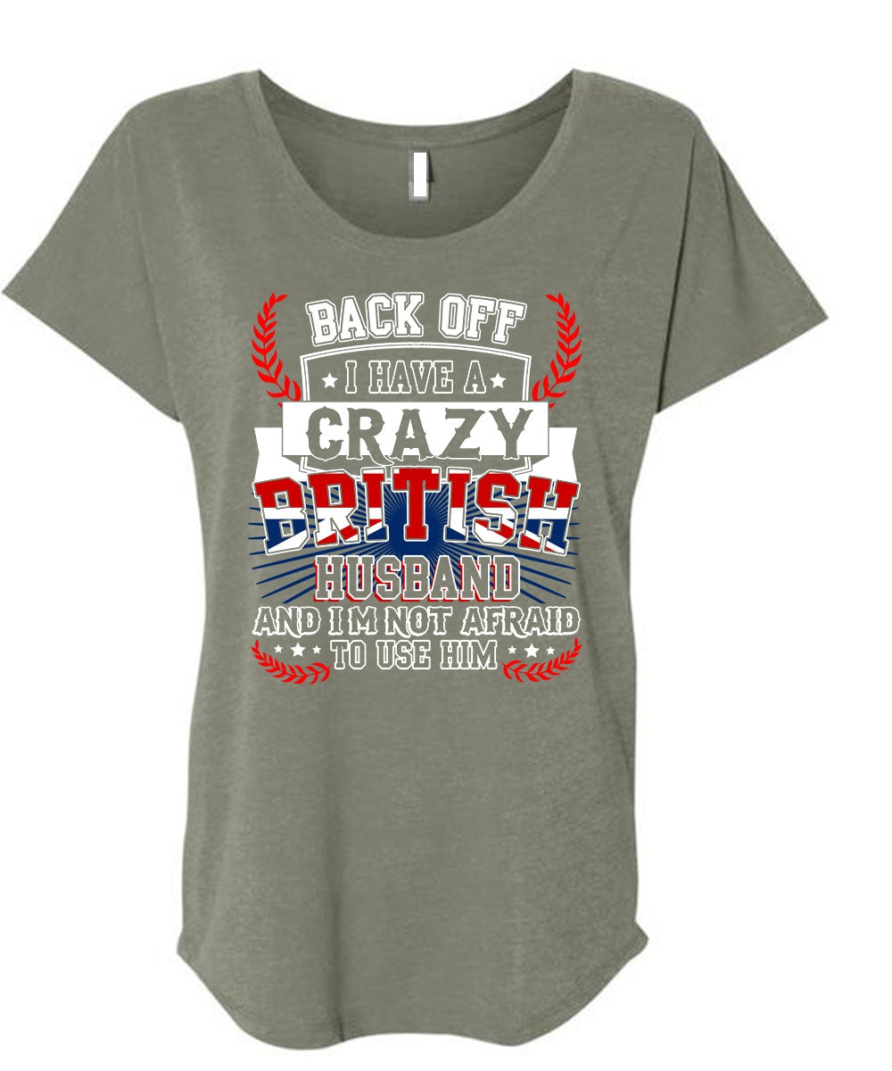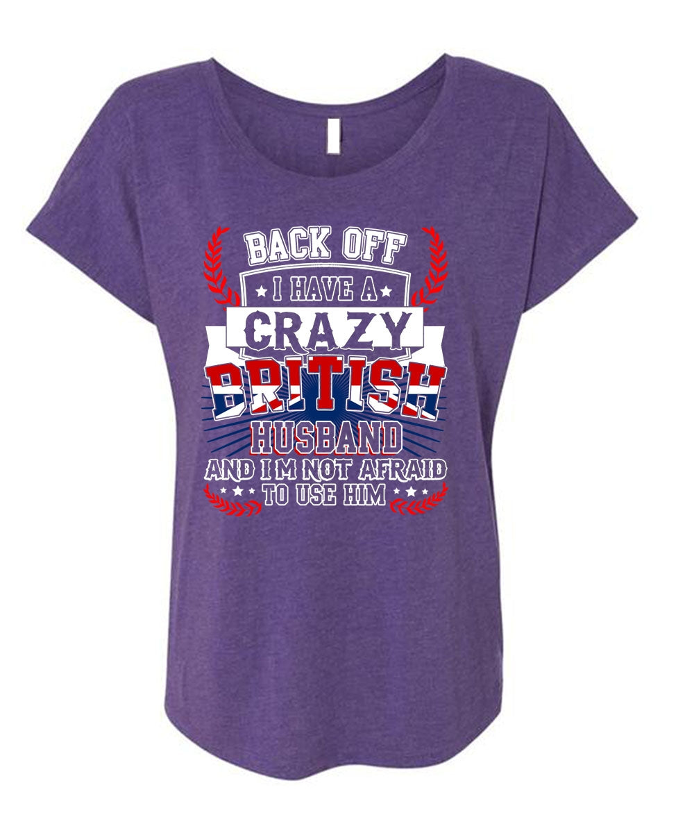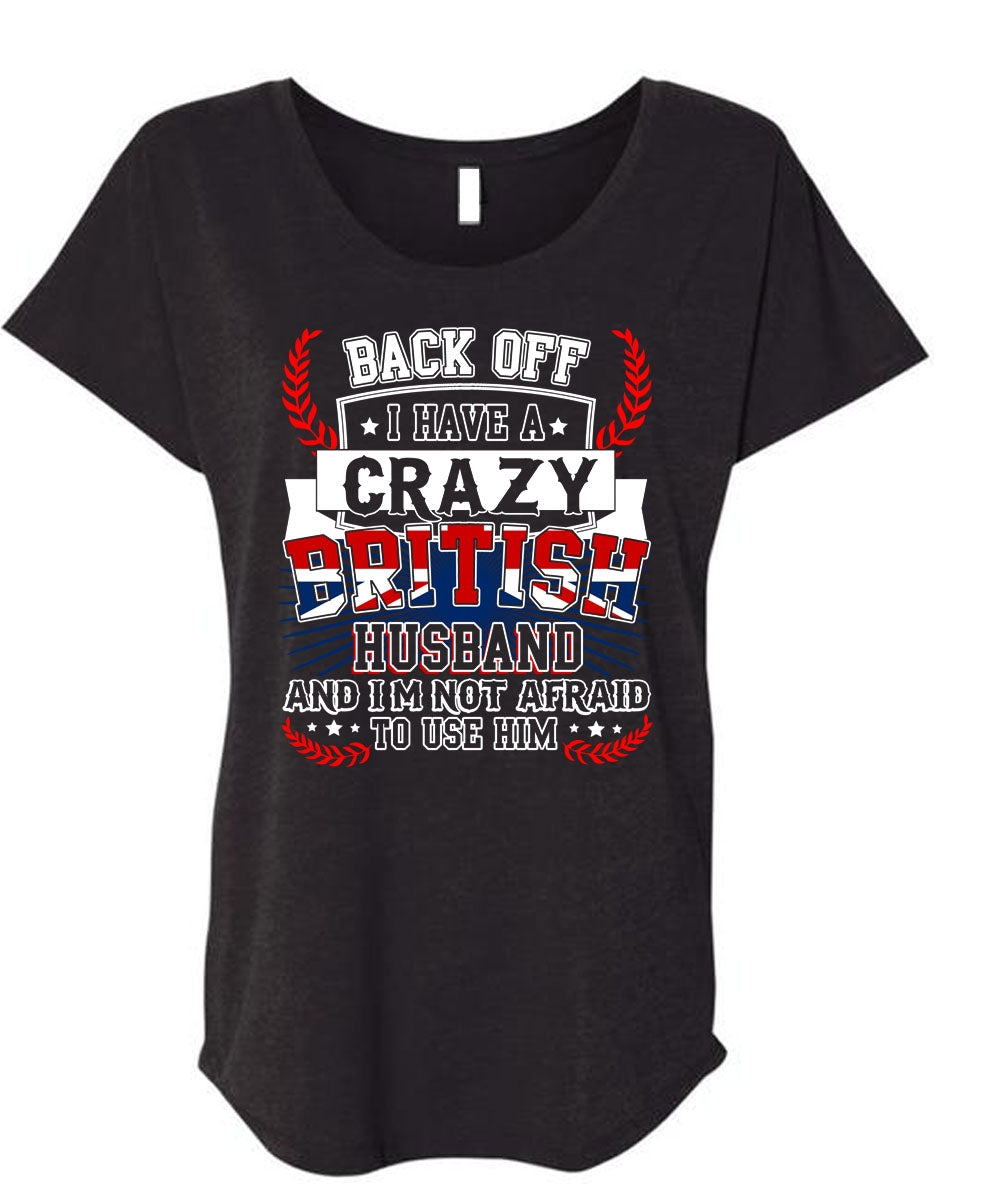 I Have A Crazy British Husband T Shirt, Being A Husband T Shirt, Cool Shirt (Ladies' Triblend Dolman Sleeve)
