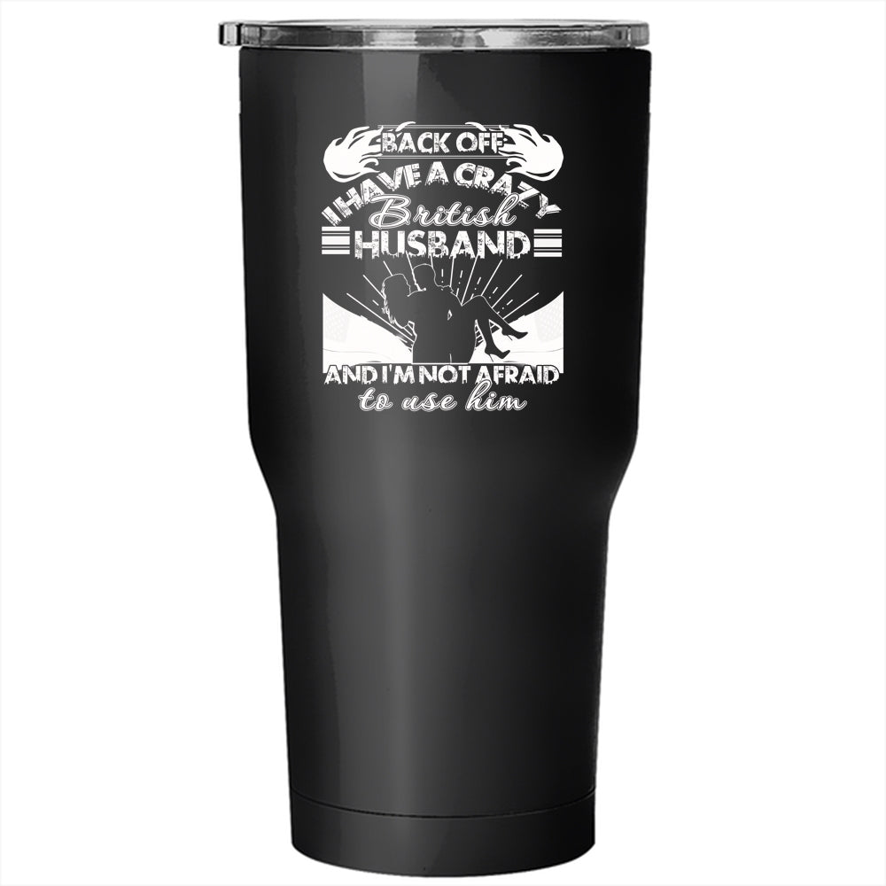 I Have A Crazy British Husband Tumbler 30 oz Stainless Steel, Awesome British Husband Travel Mug