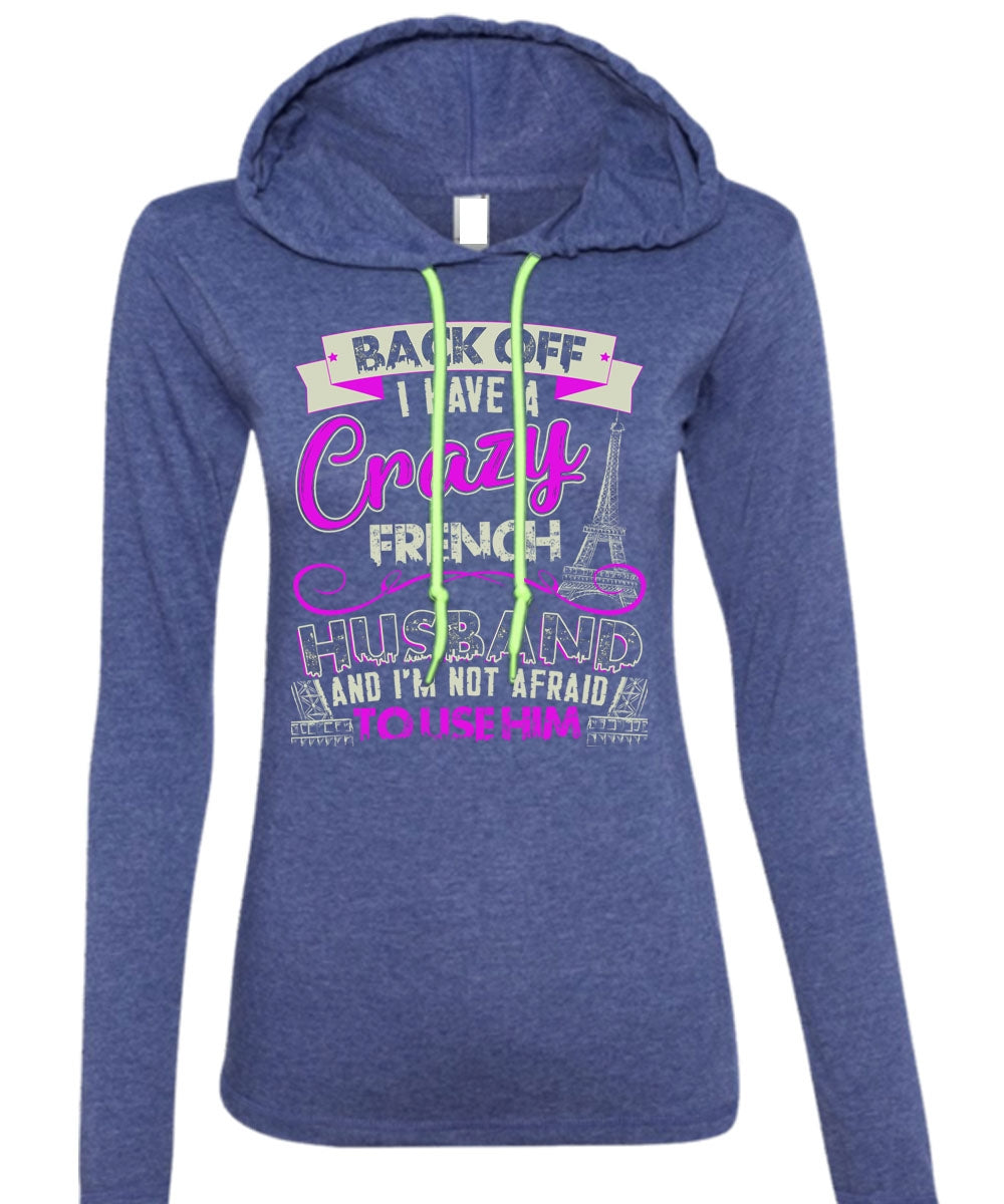 I Have A Crazy French Husband T Shirt, Being A Husband T Shirt (Anvil Ladies Ringspun Hooded)