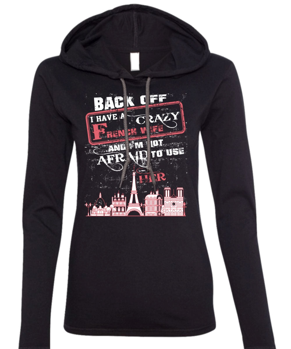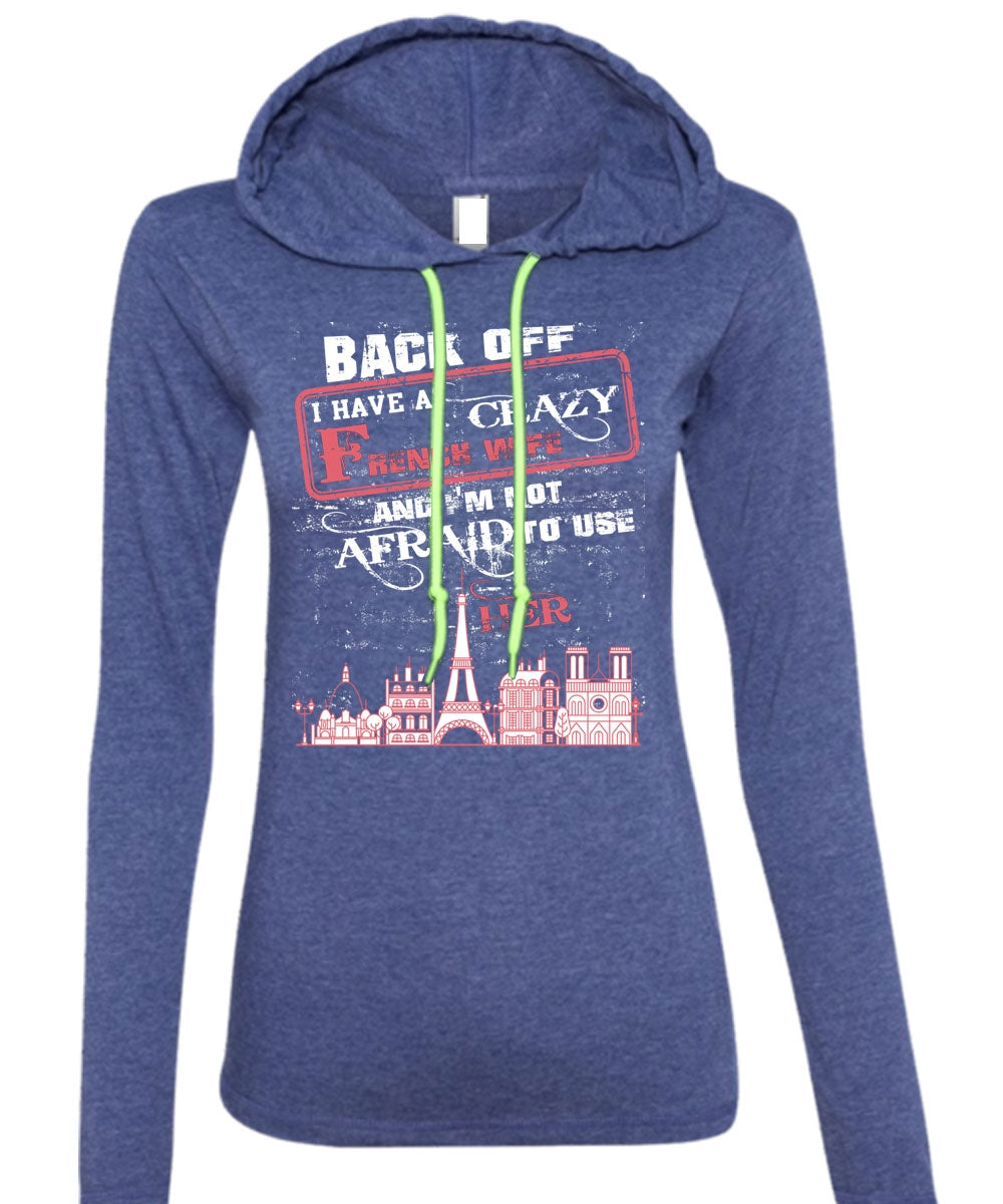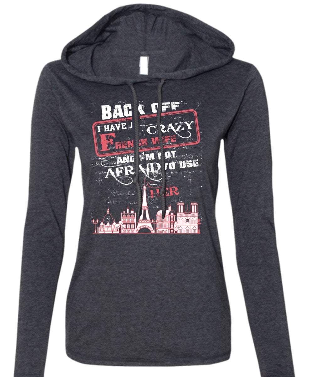I Have A Crazy French Wife T Shirt, I'm Not Afraid To Use Her T Shirt (Anvil Ladies Ringspun Hooded)