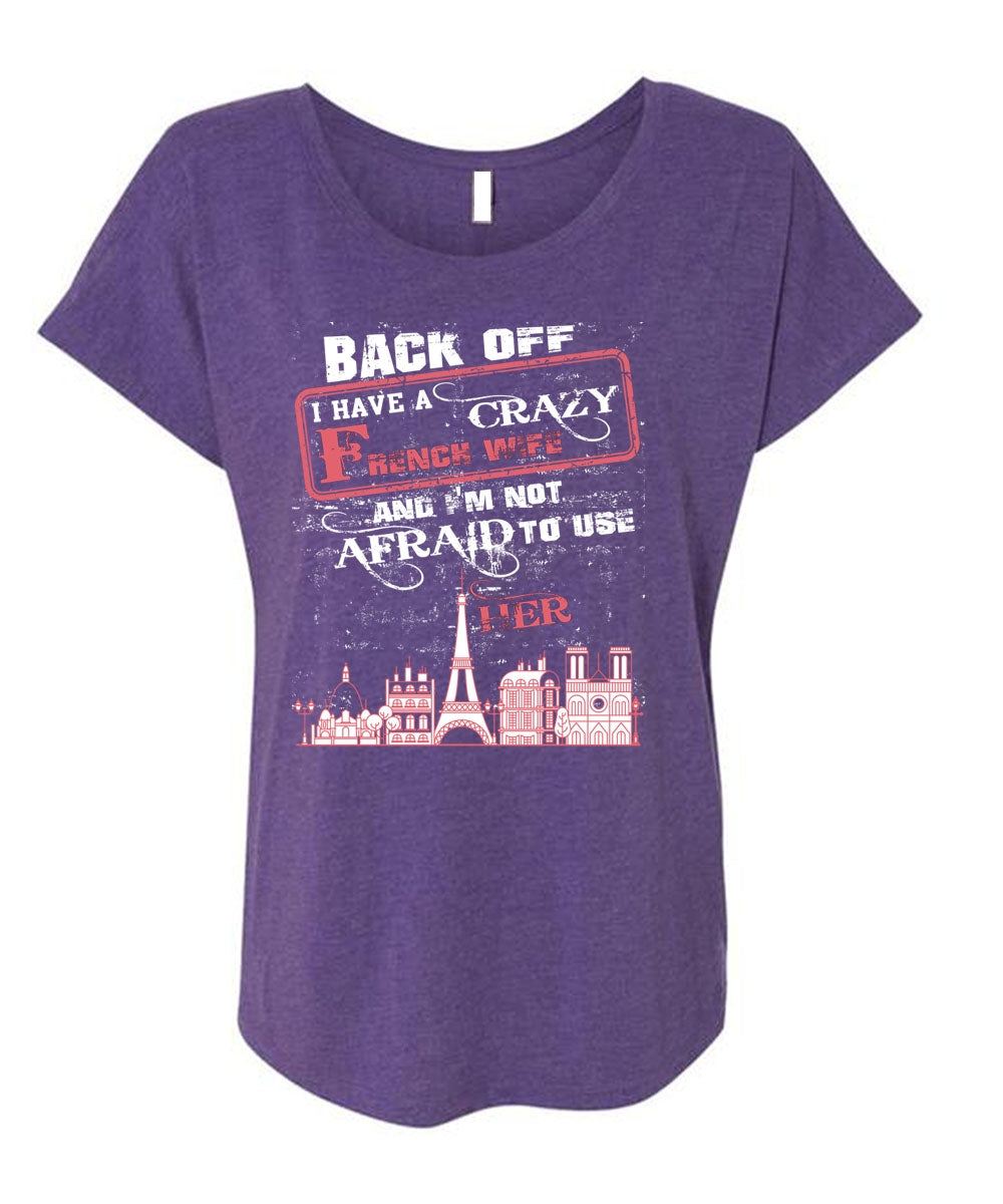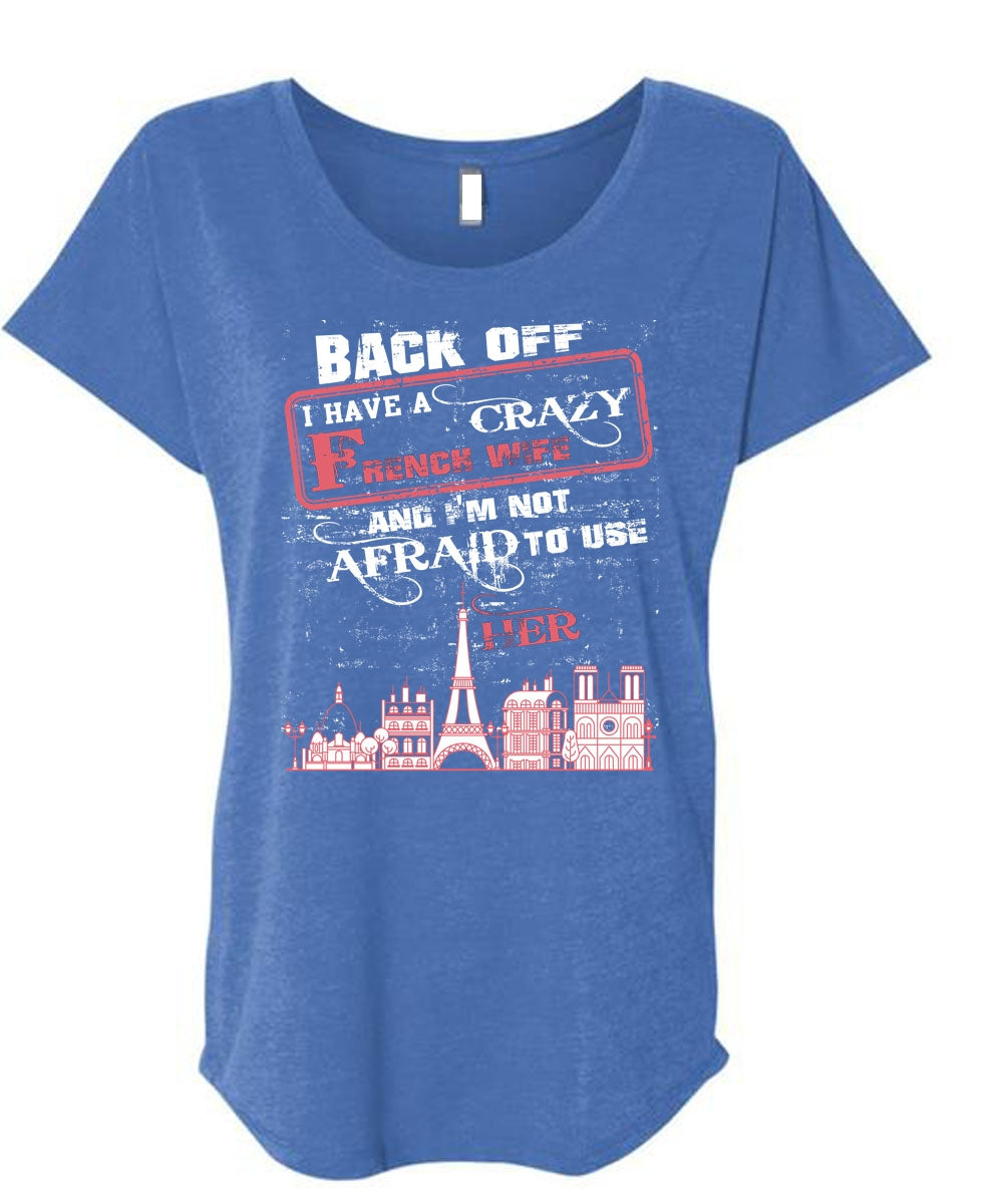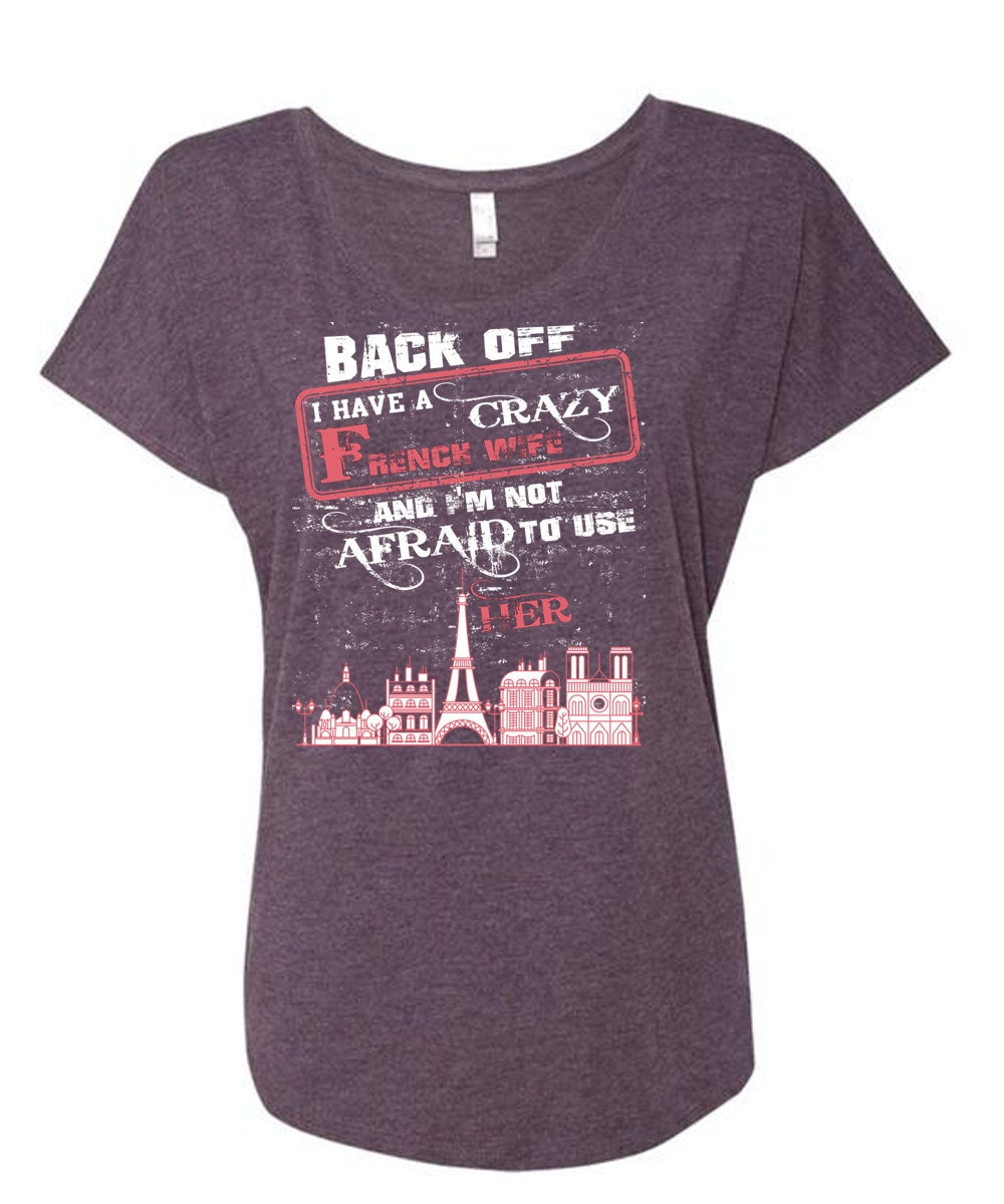 I Have A Crazy French Wife T Shirt, I'm Not Afraid To Use Her T Shirt, Cool Shirt (Ladies' Triblend Dolman Sleeve)