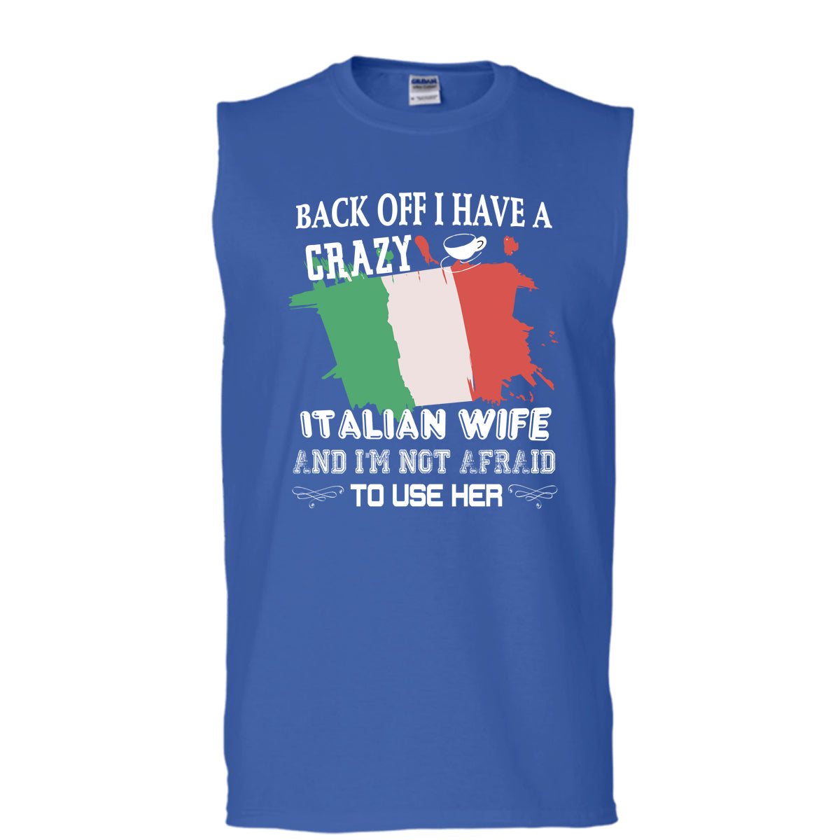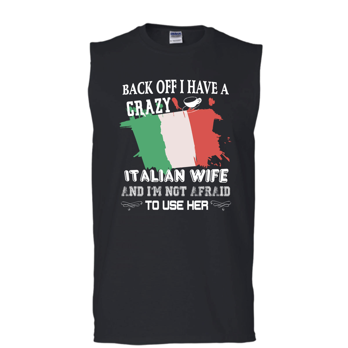I Have A Crazy Italian Wife T Shirt, I'm Not Afraid To Use Her T Shirt, Cool T Shirt (Men's Cotton Sleeveless)