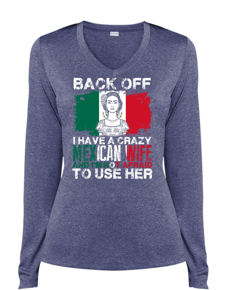 I Have A Crazy Mexican Wife T Shirt, Being A Wife T Shirt, Cool Shirt (Ladies LS Heather V-Neck)