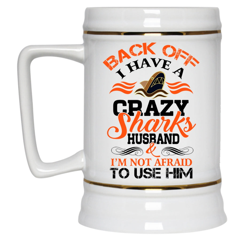 I Have A Crazy Sharks Husband Mug, Cool Sharks Husband Cup (Beer Mug)