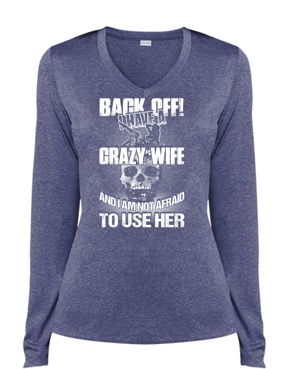 I Have A Crazy Wife T Shirt, Being A Wife T Shirt, Cool Shirt (Ladies LS Heather V-Neck)