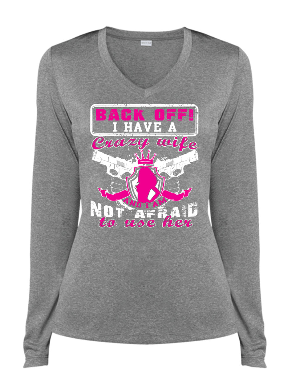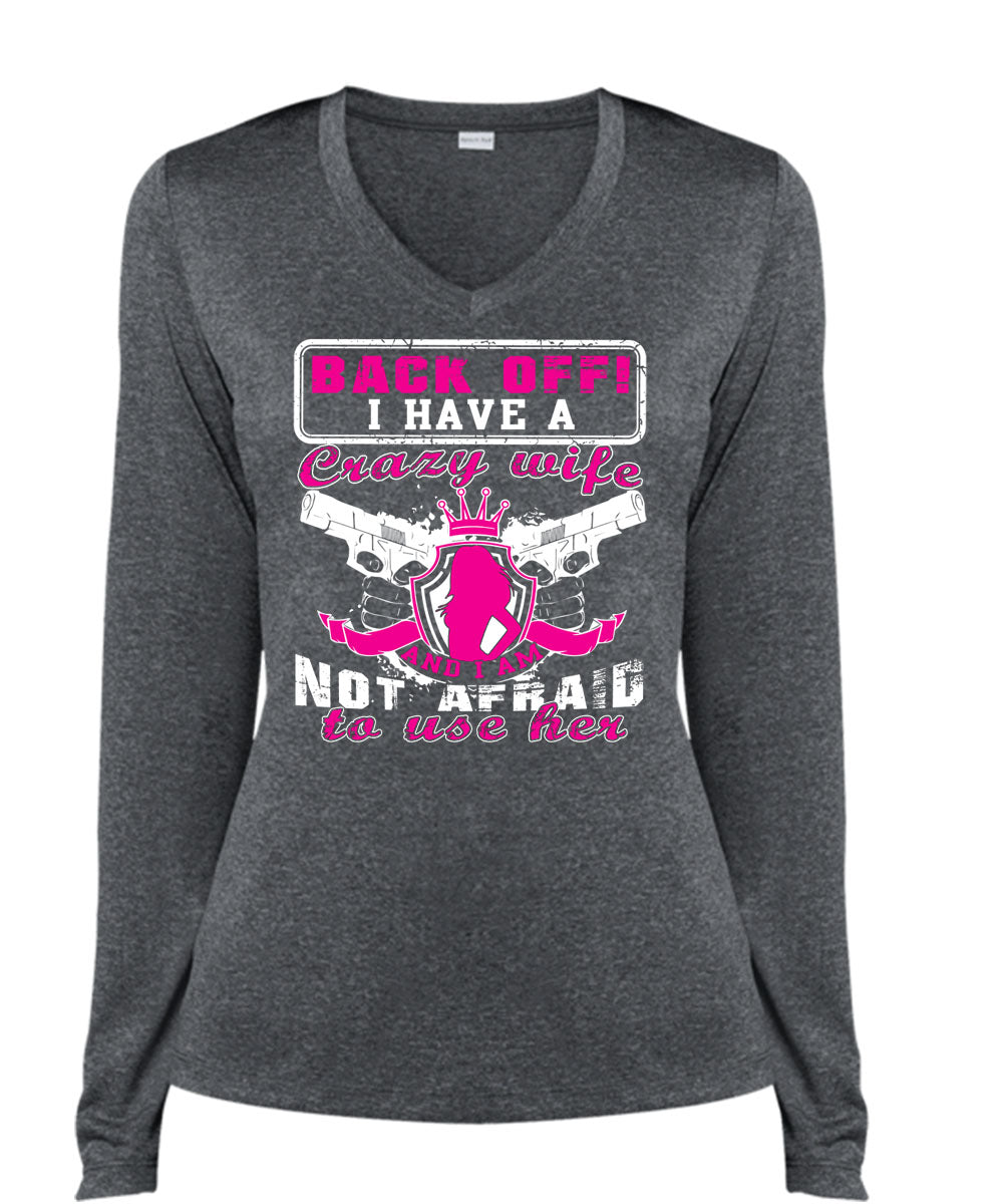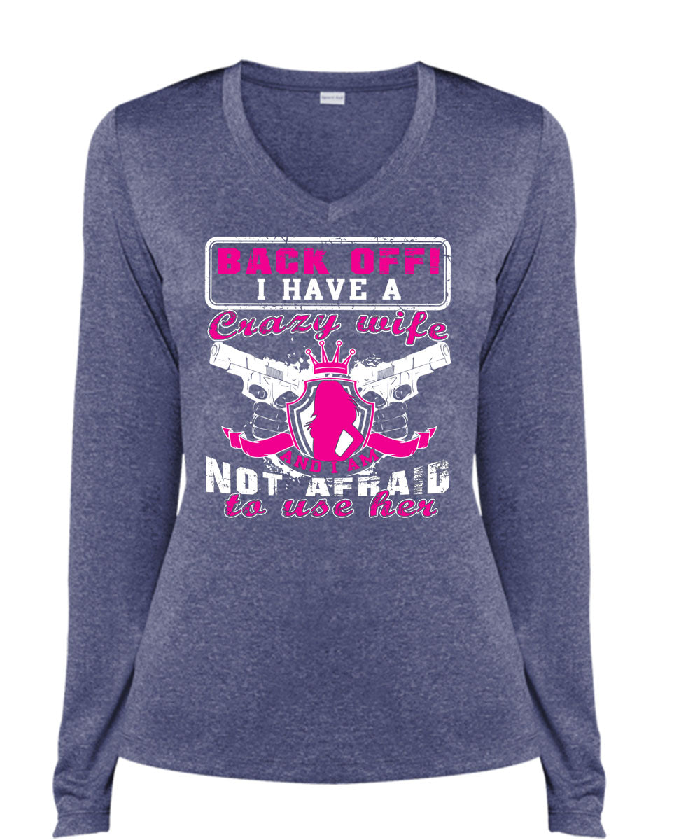 I Have A Crazy Wife T Shirt, I Am Not Afraid To Use Her T Shirt, Cool Shirt (Ladies LS Heather V-Neck)