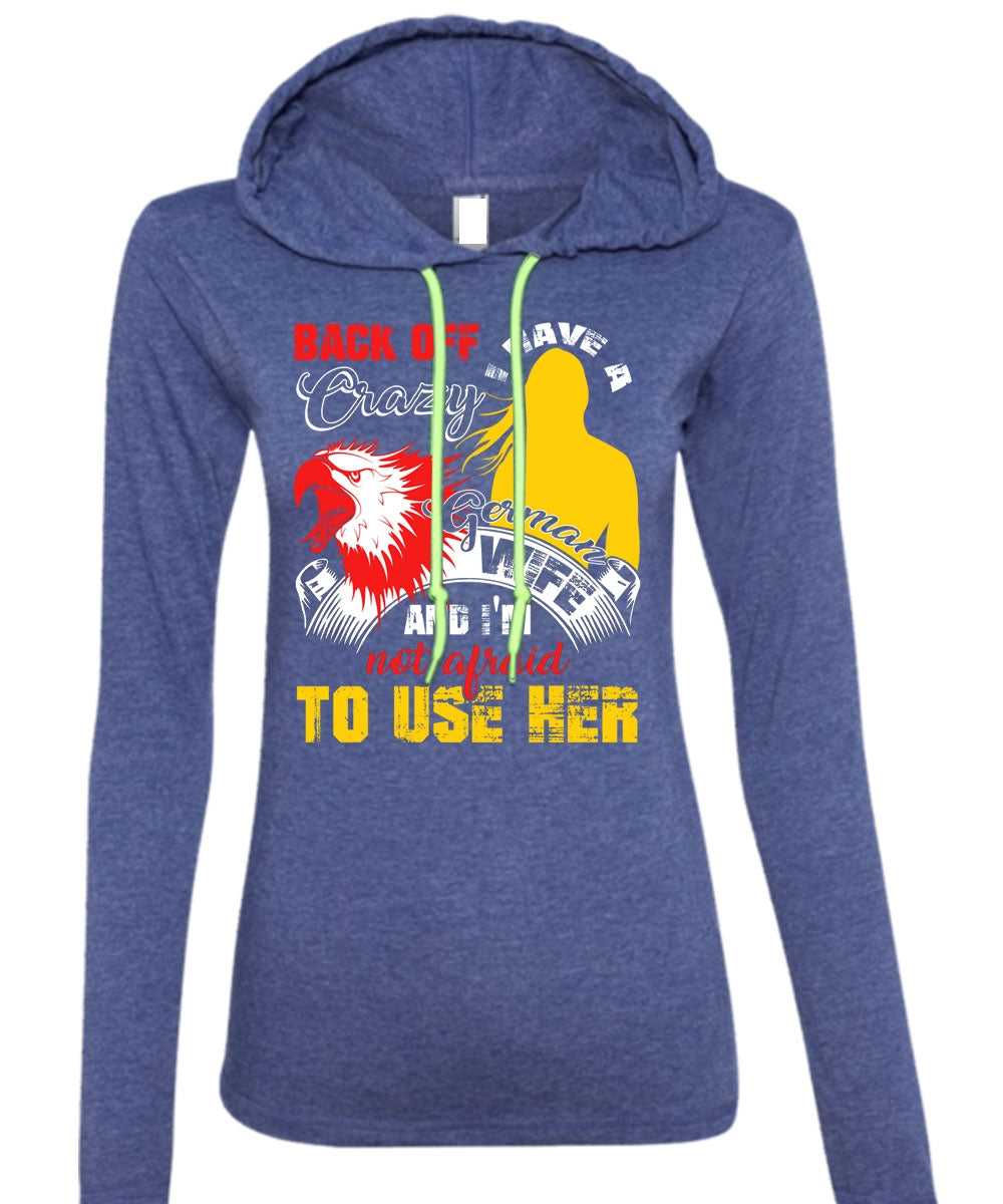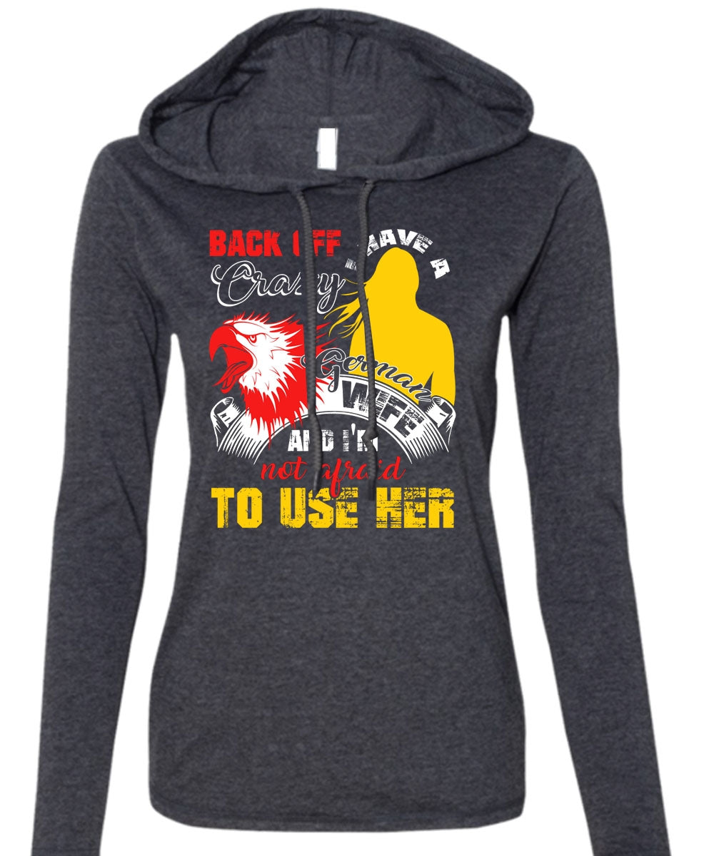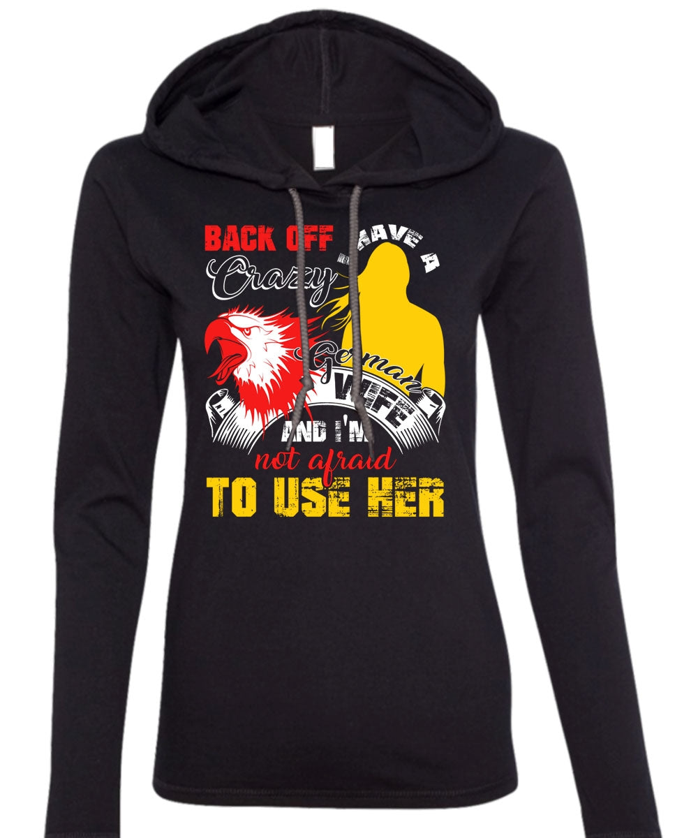 I Have A German Wife T Shirt, I'm Not Afraid To Use Her T Shirt (Anvil Ladies Ringspun Hooded)