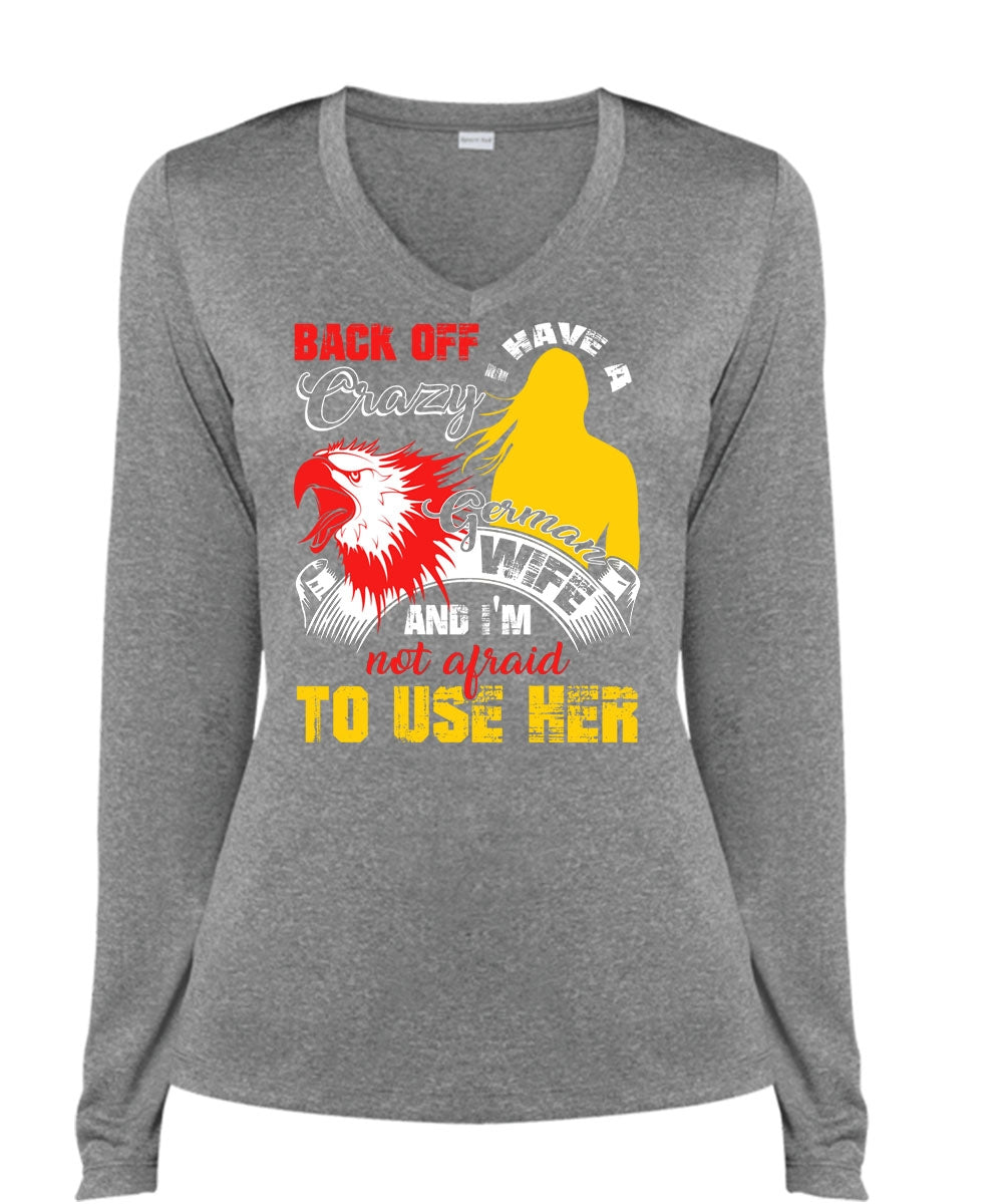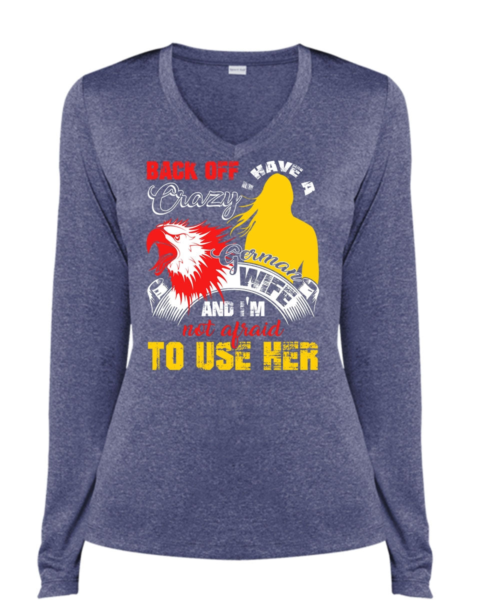 I Have A German Wife T Shirt, I'm Not Afraid To Use Her T Shirt, Cool Shirt (Ladies LS Heather V-Neck)